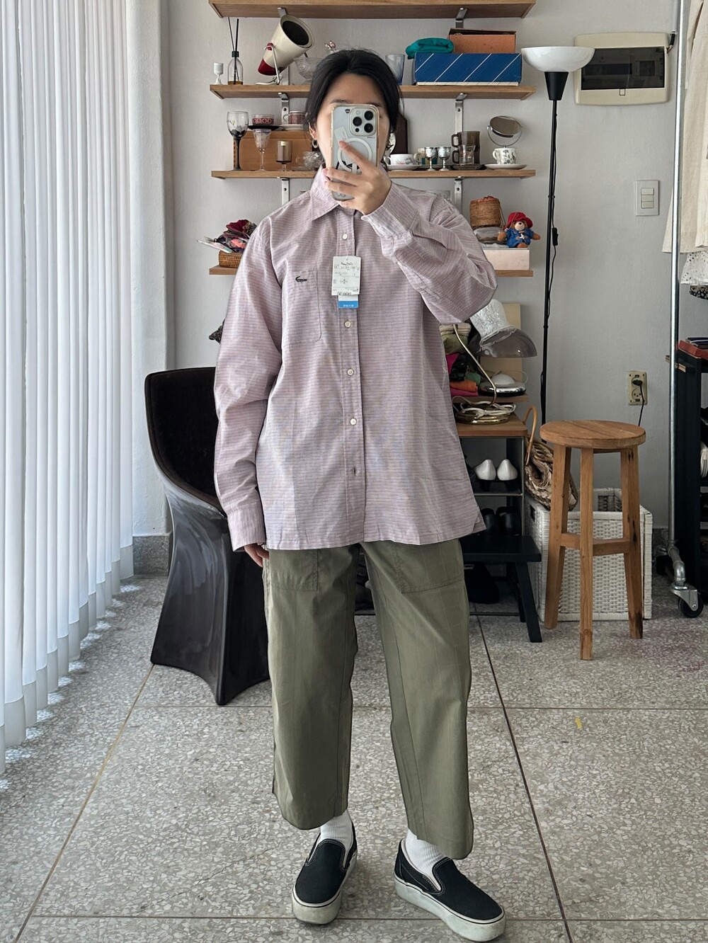 비슷한 색감으로 체크패턴 더해졌어요.