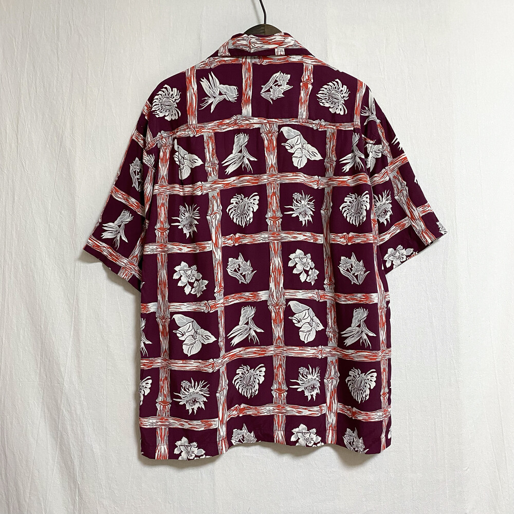 하와이안 셔츠로 꽃 패턴이 자리잡고있어요.