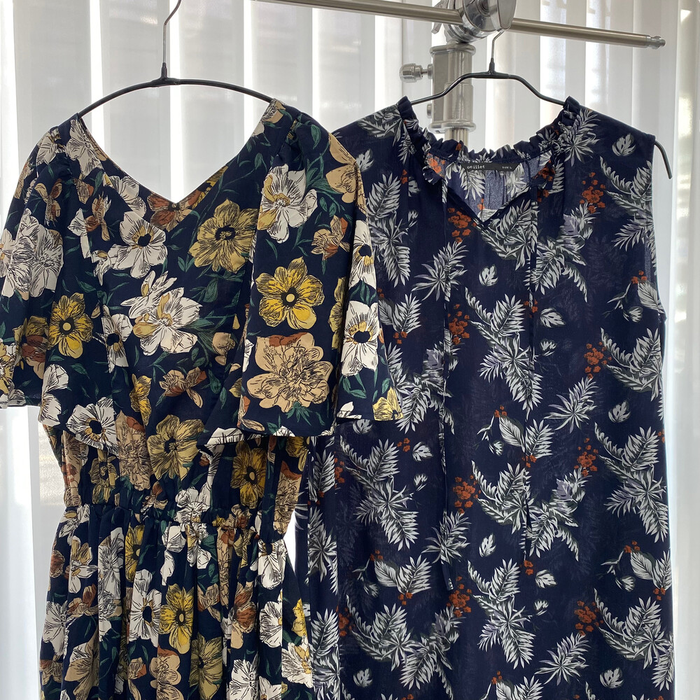야자잎 패턴이 가득한 원피스입니다.