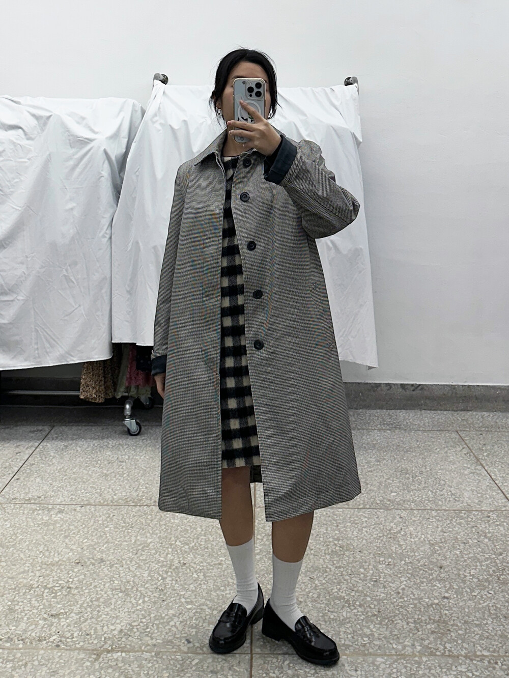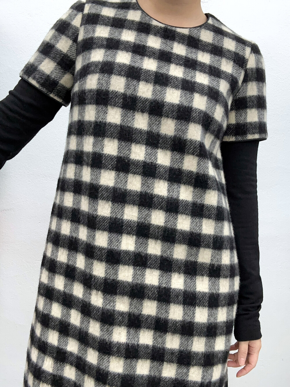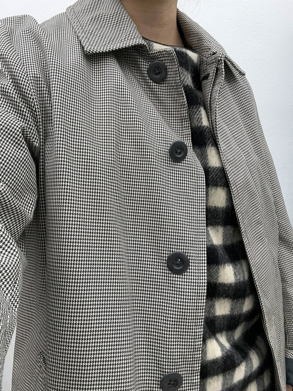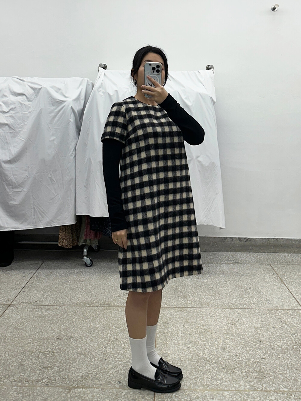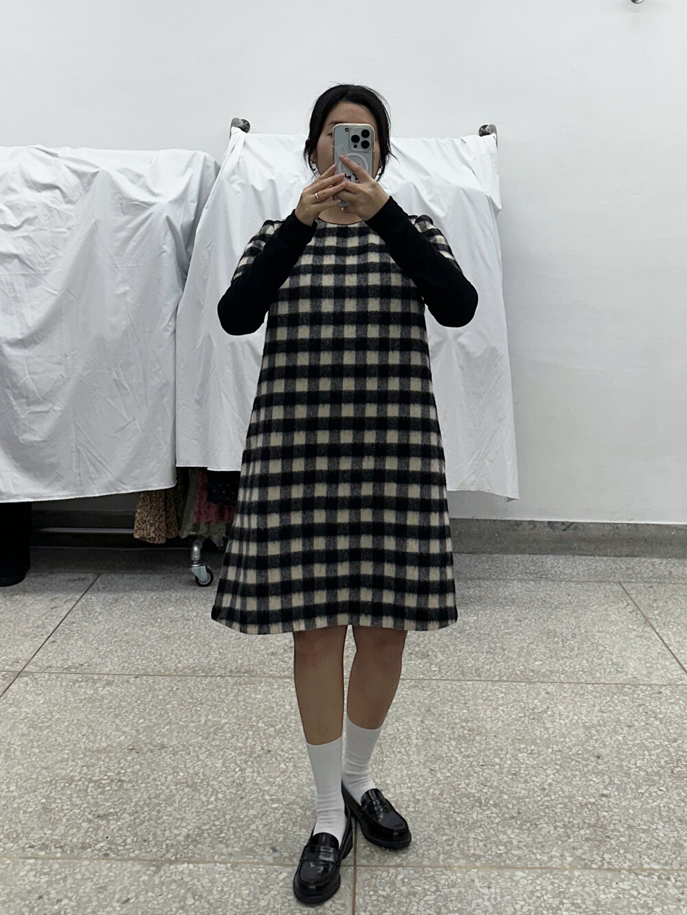 특유의 울 소재감은 깅엄 체크 패턴으로