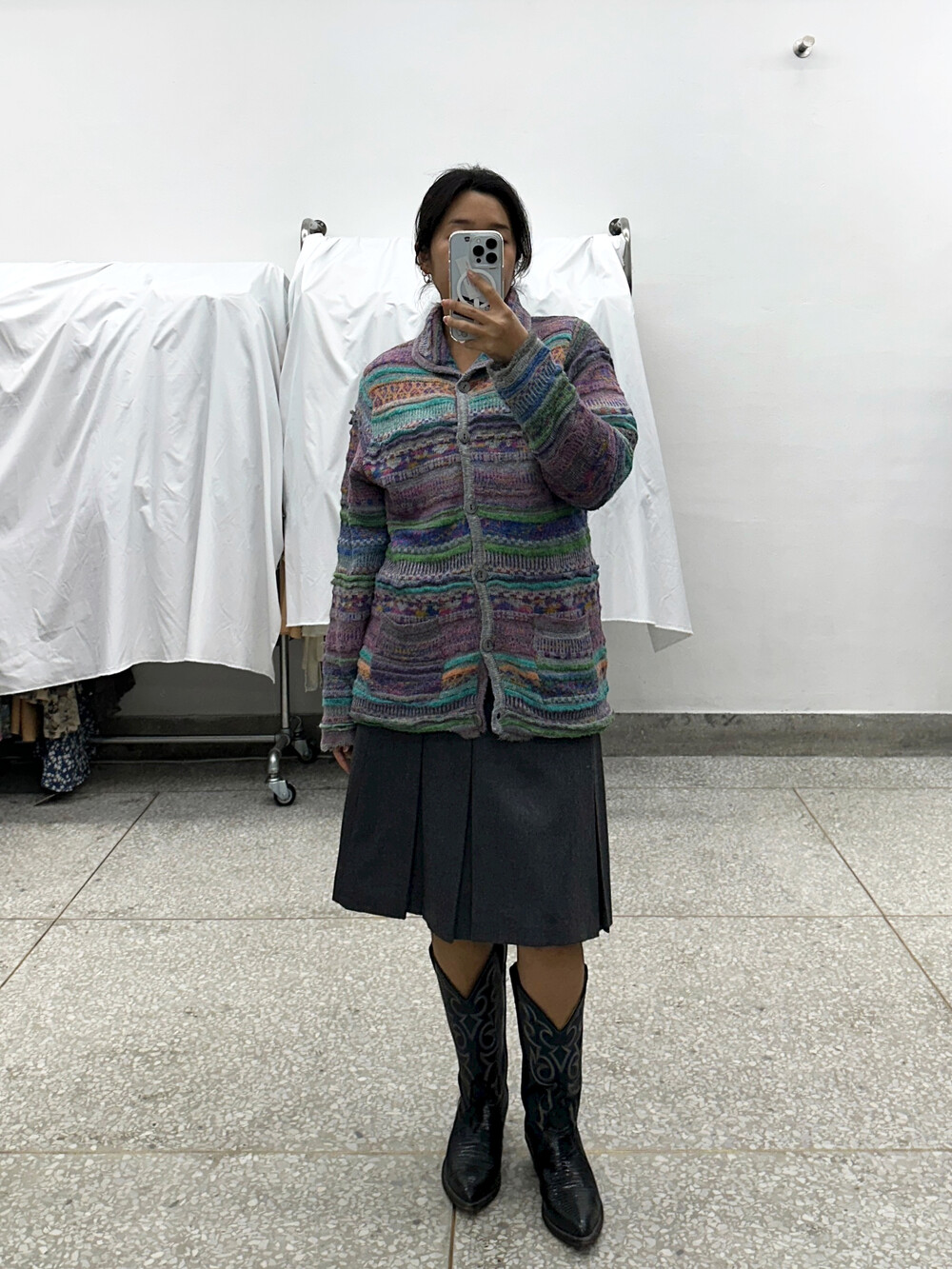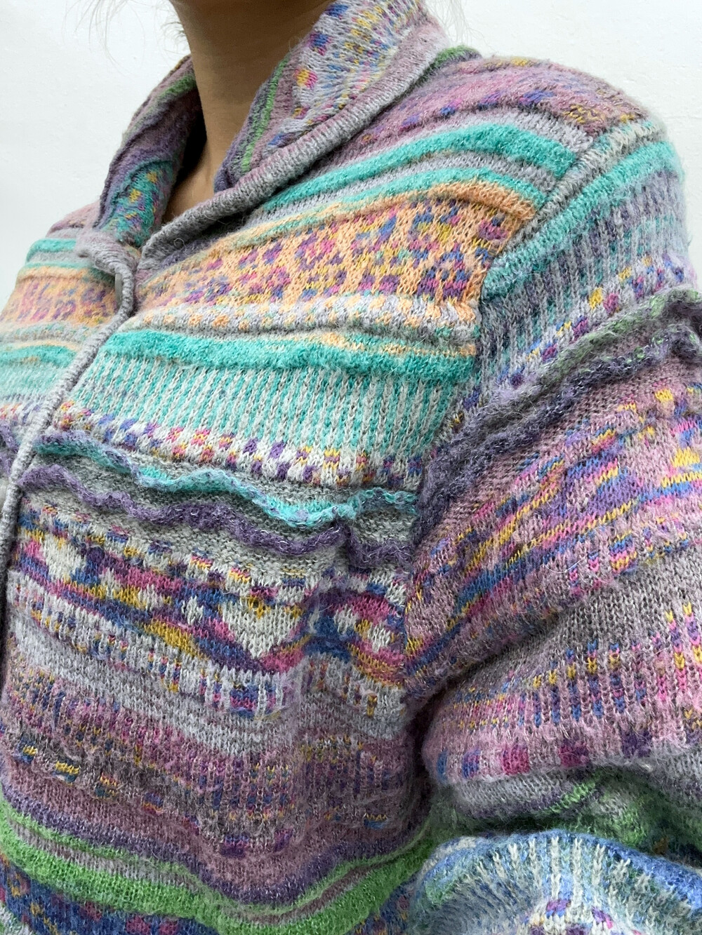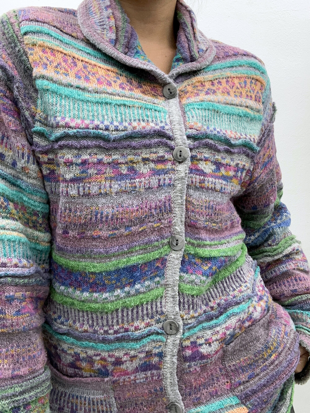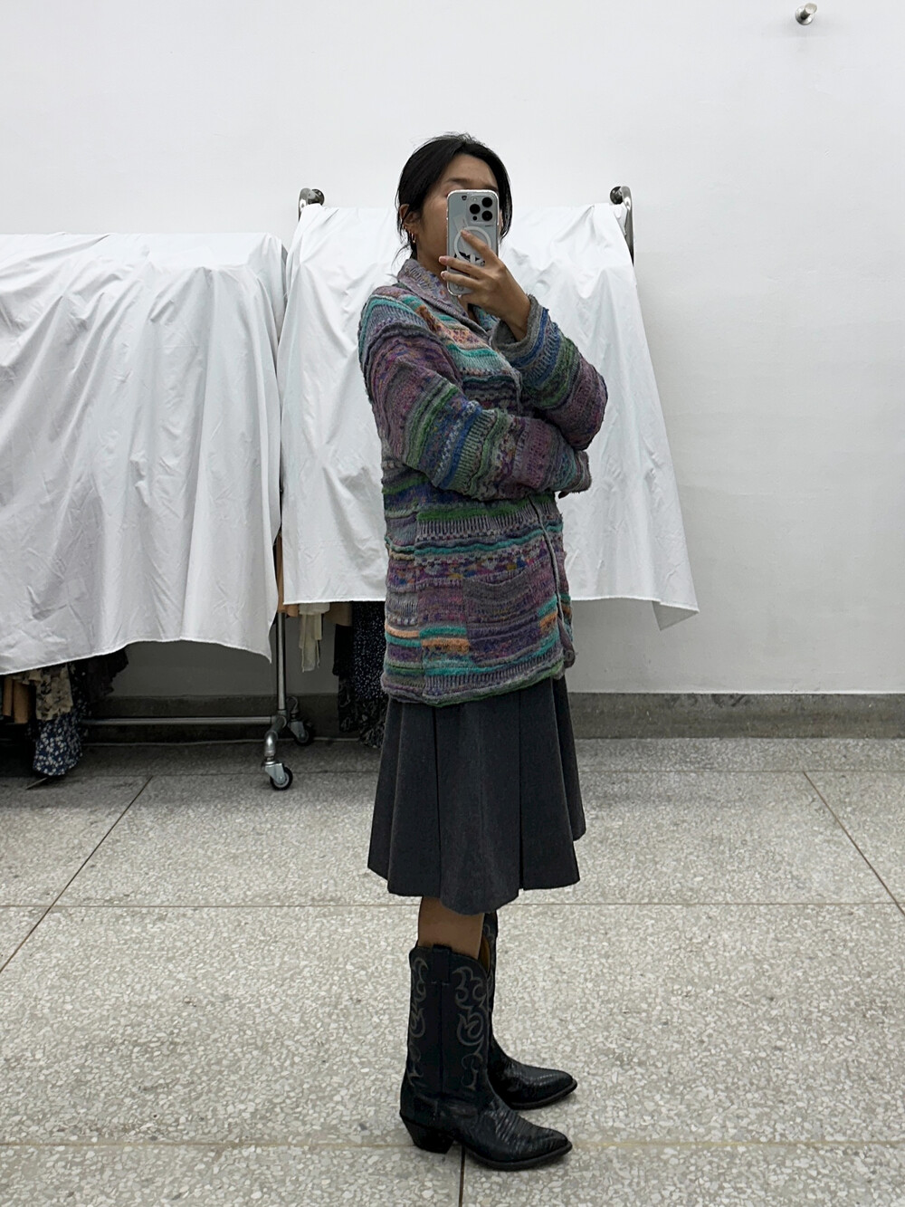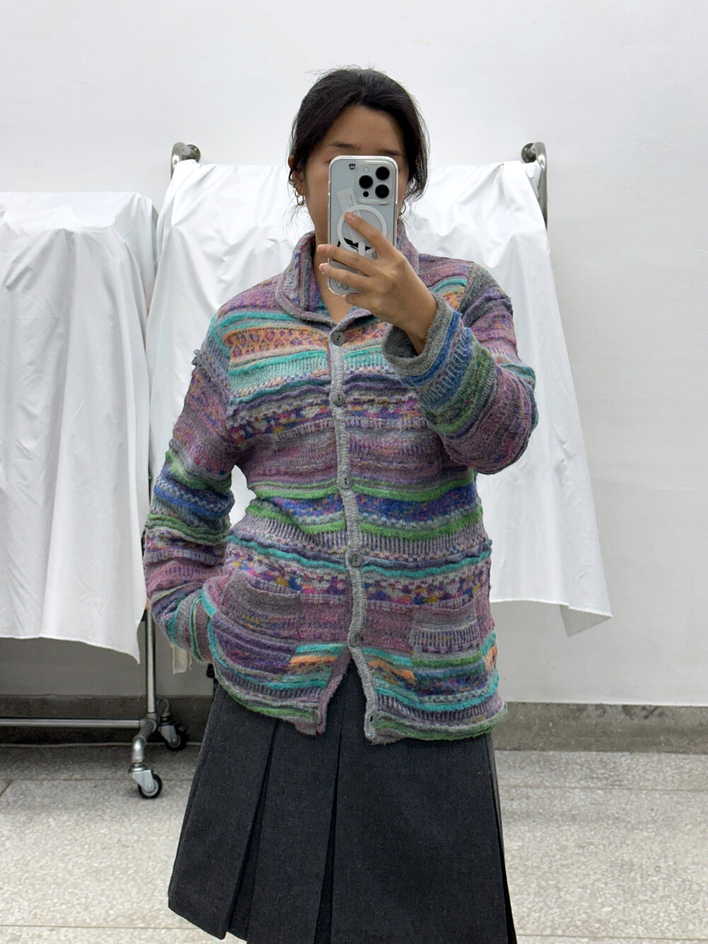 파스텔톤의 색감이 아름다운 가디건입니다.