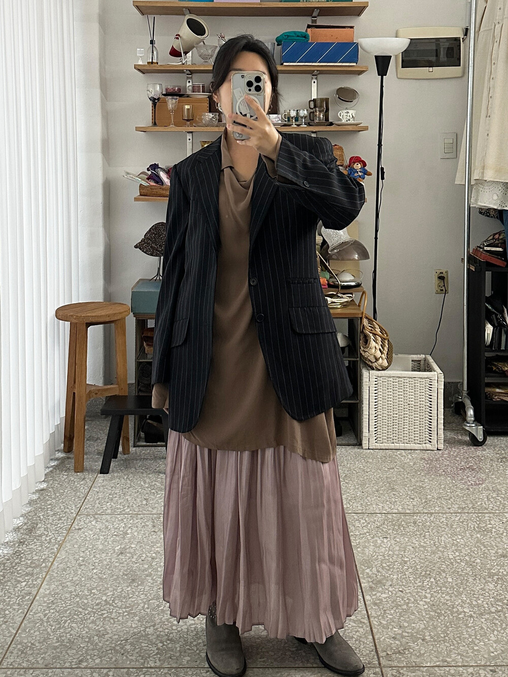♦ 아주 가끔 찍어올리는 착용샷 참고! 클짱은 155cm / 44반 55 / S사이즈 입니다.