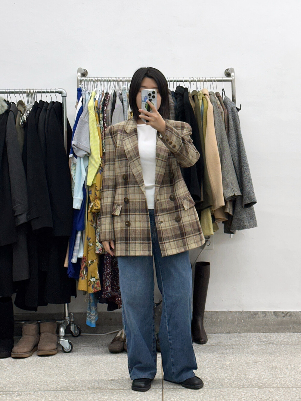♦ 아주 가끔 찍어올리는 착용샷 참고! 클짱은 155cm / 44반 55 / S사이즈 입니다.