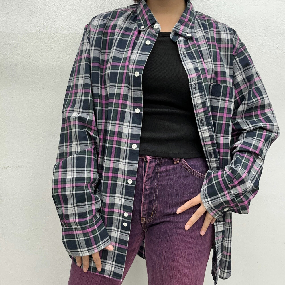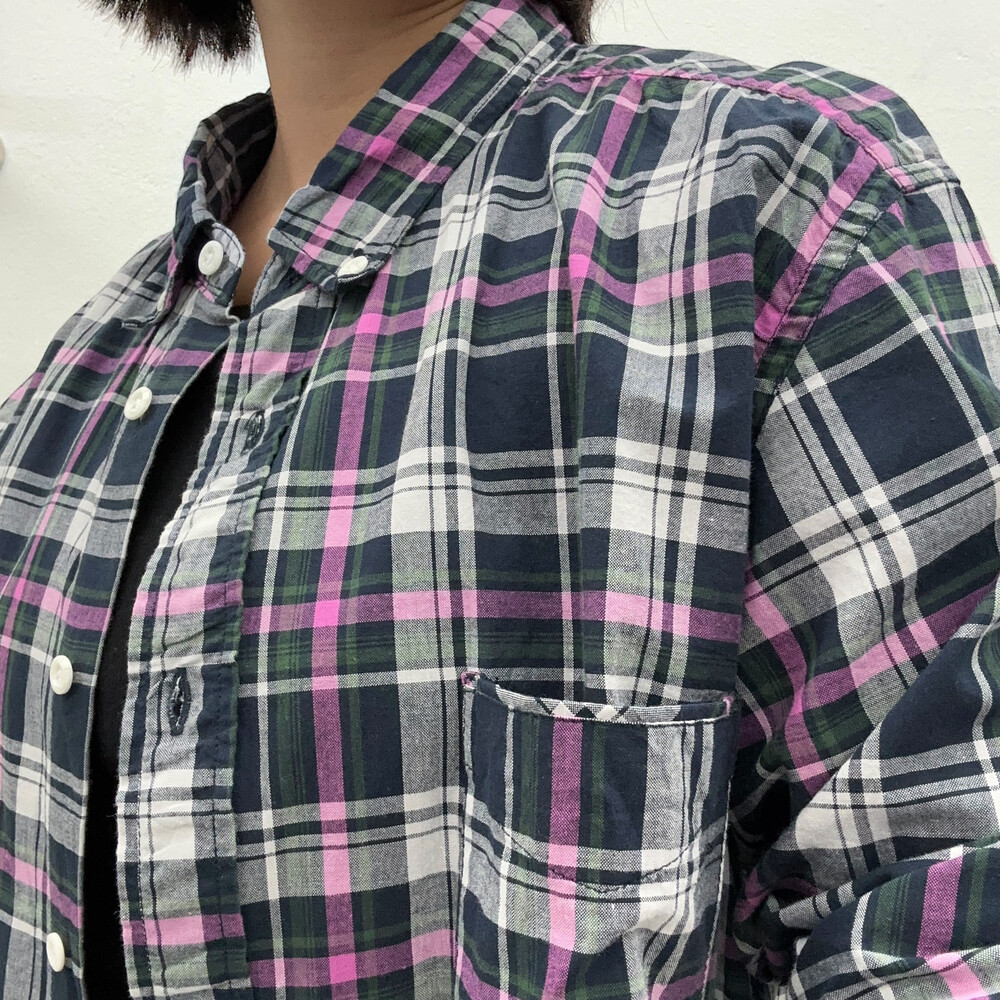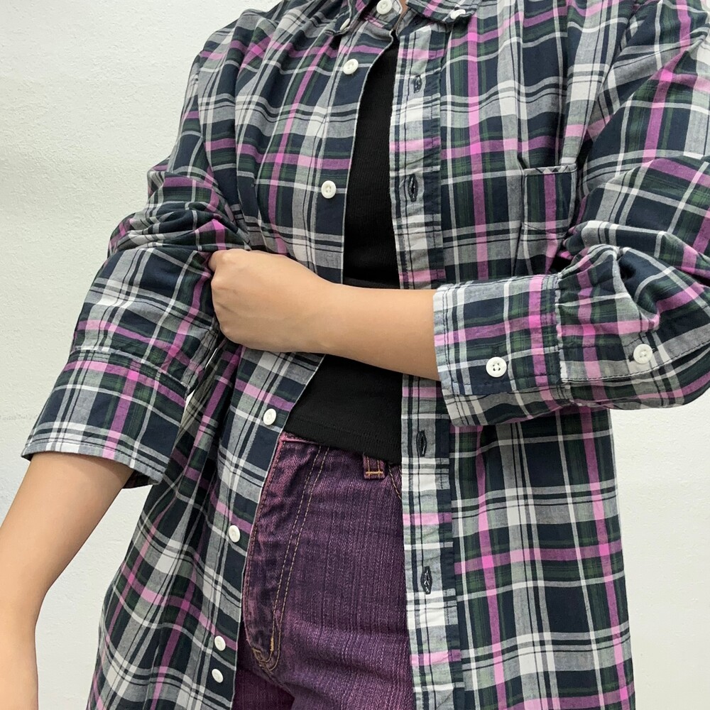 분홍색 체크패턴으로 이루어진 셔츠입니다.