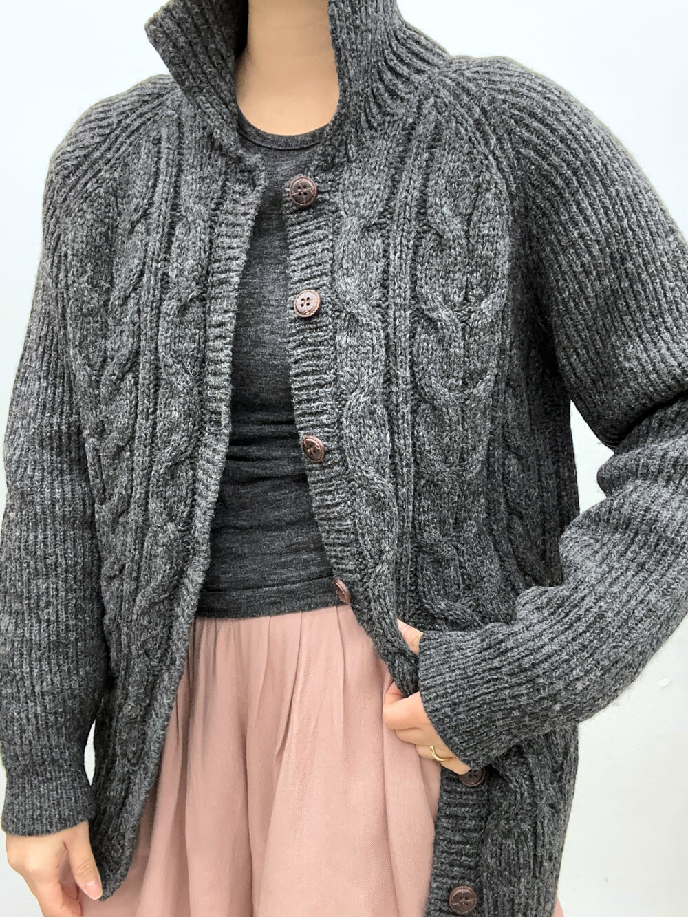 짙은 회색의 가디건입니다.