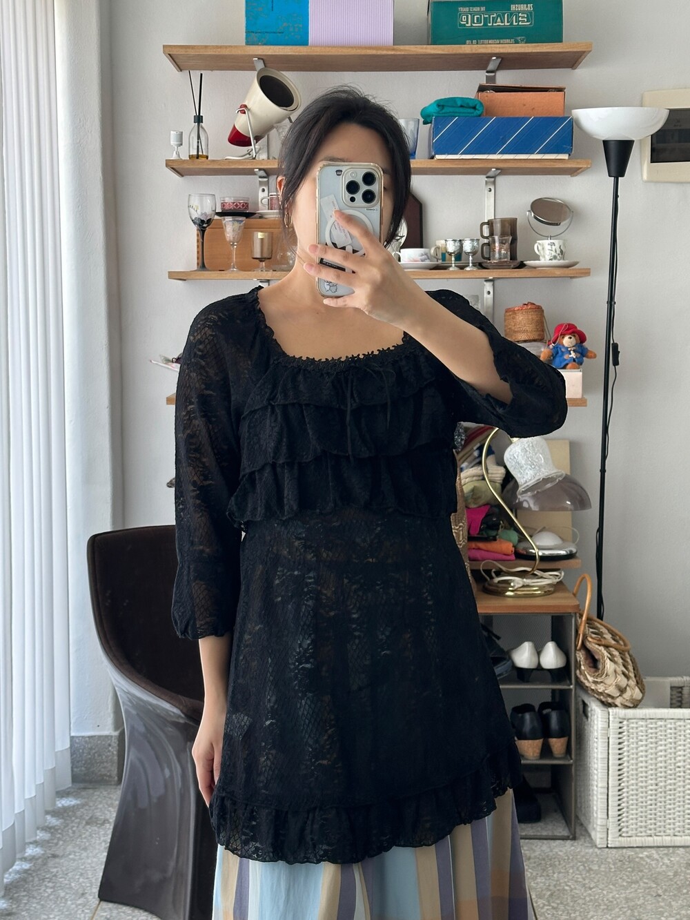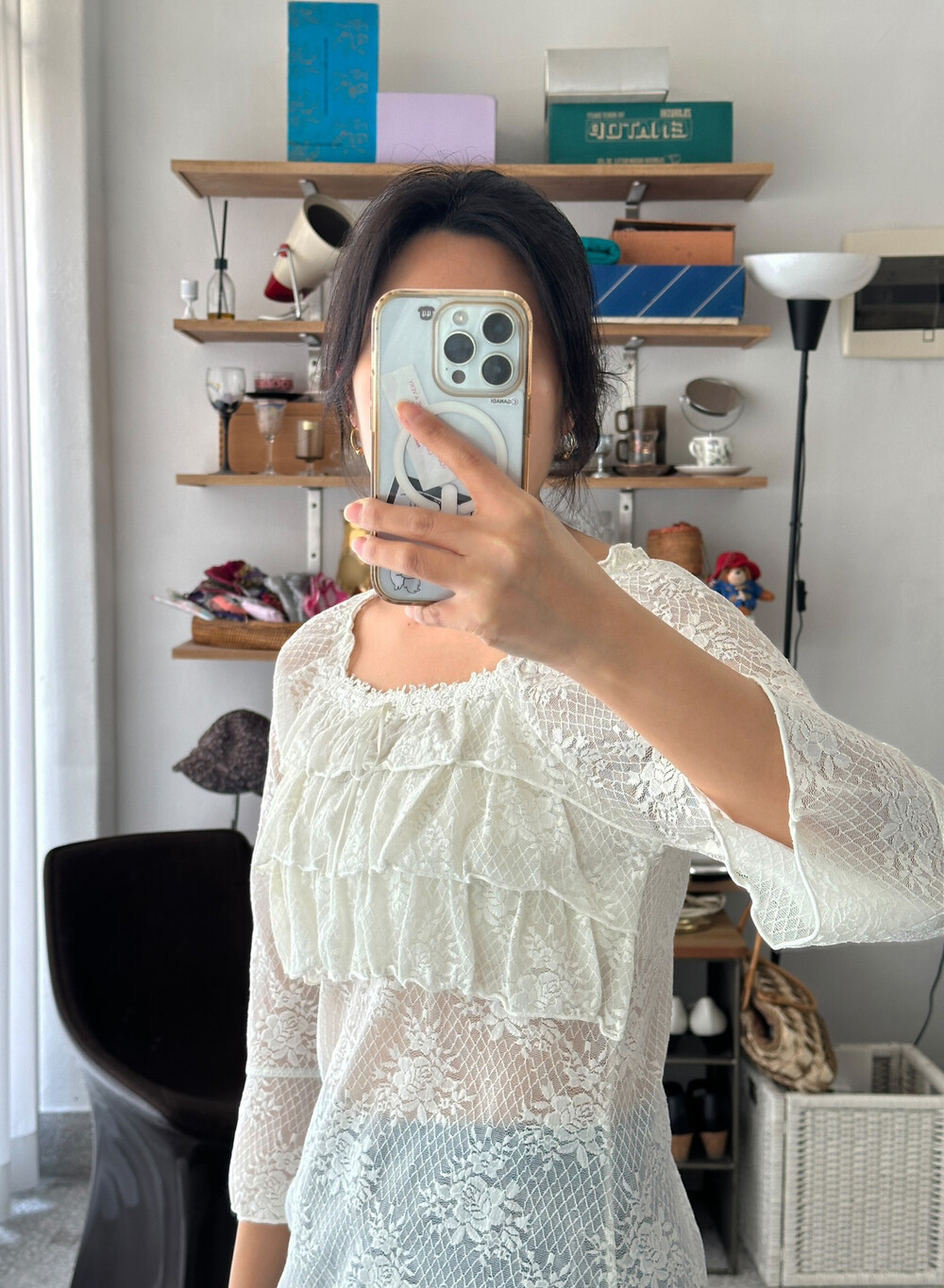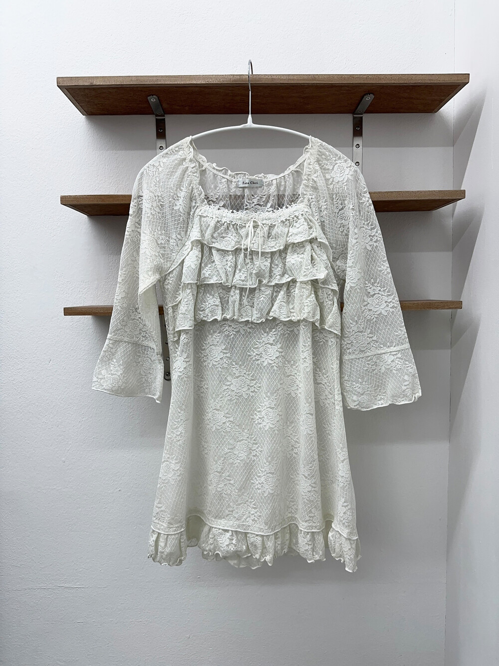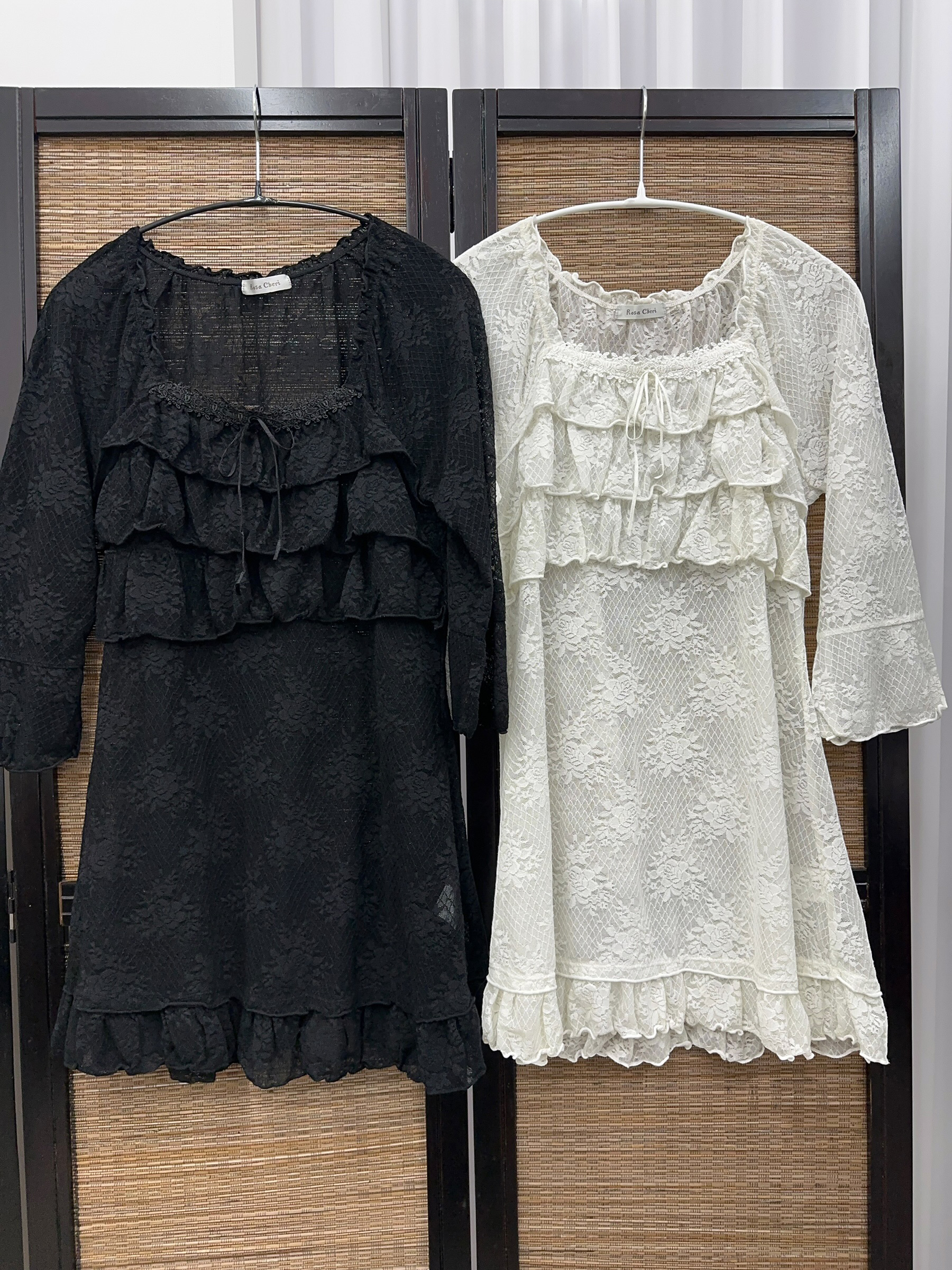 7부소매에 넥라인 얇은 리본 묶을 수 있습니다.