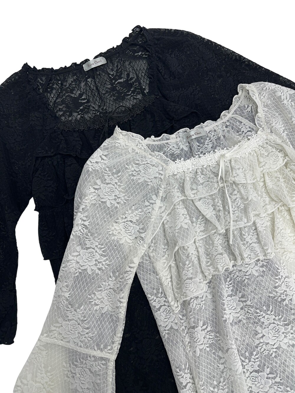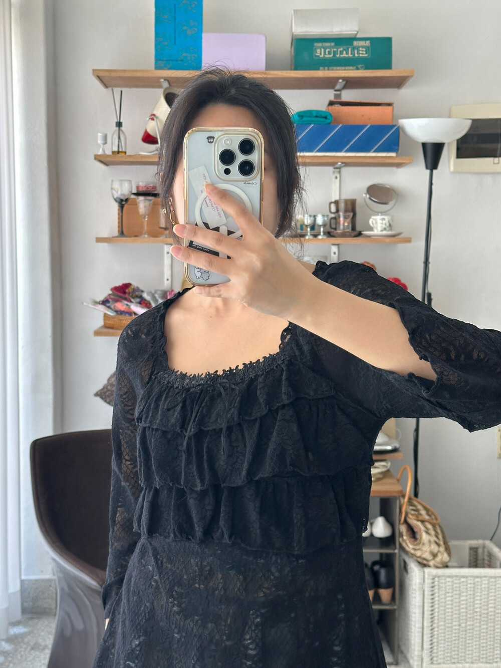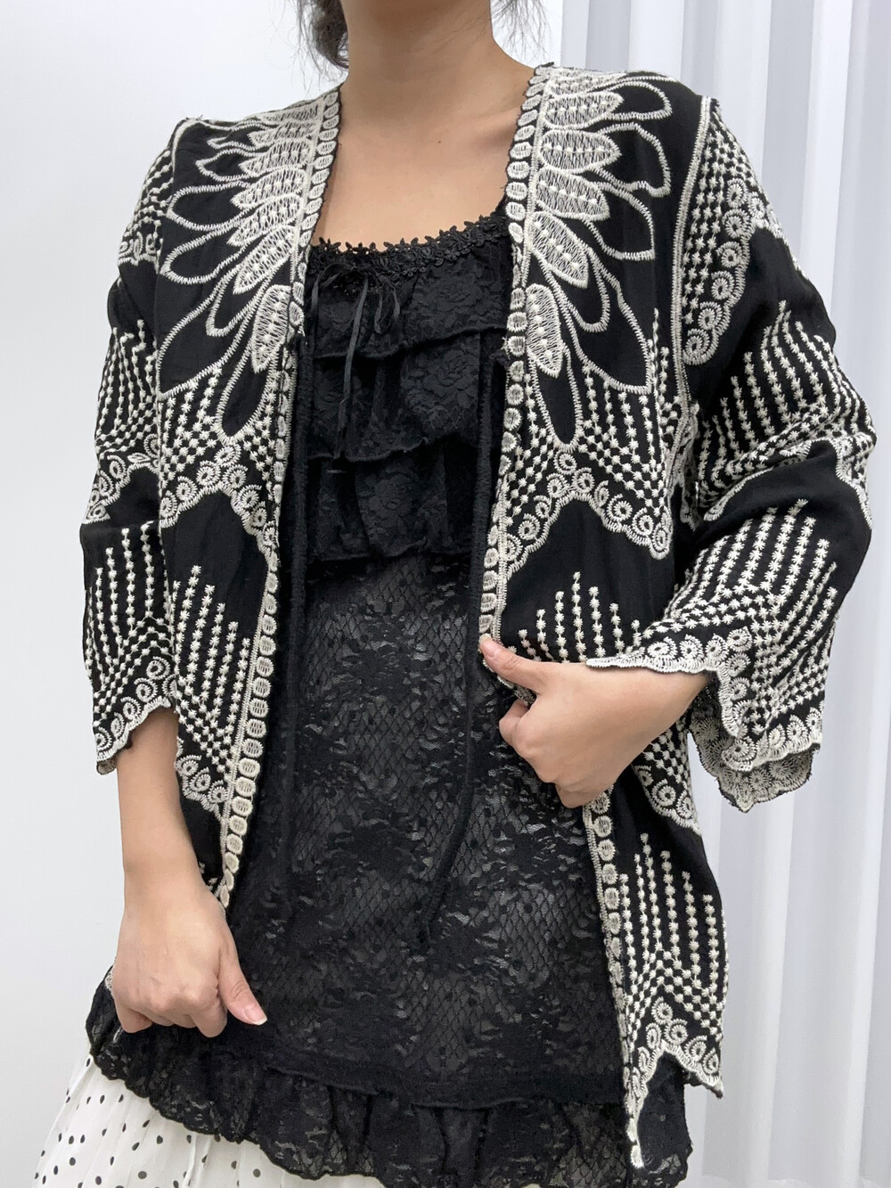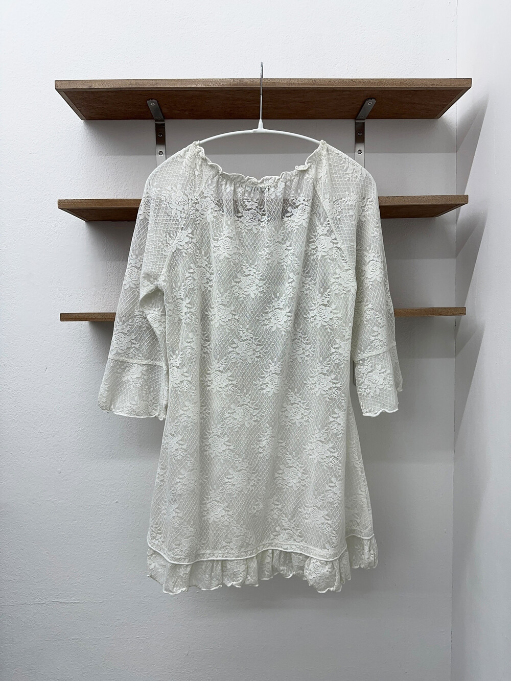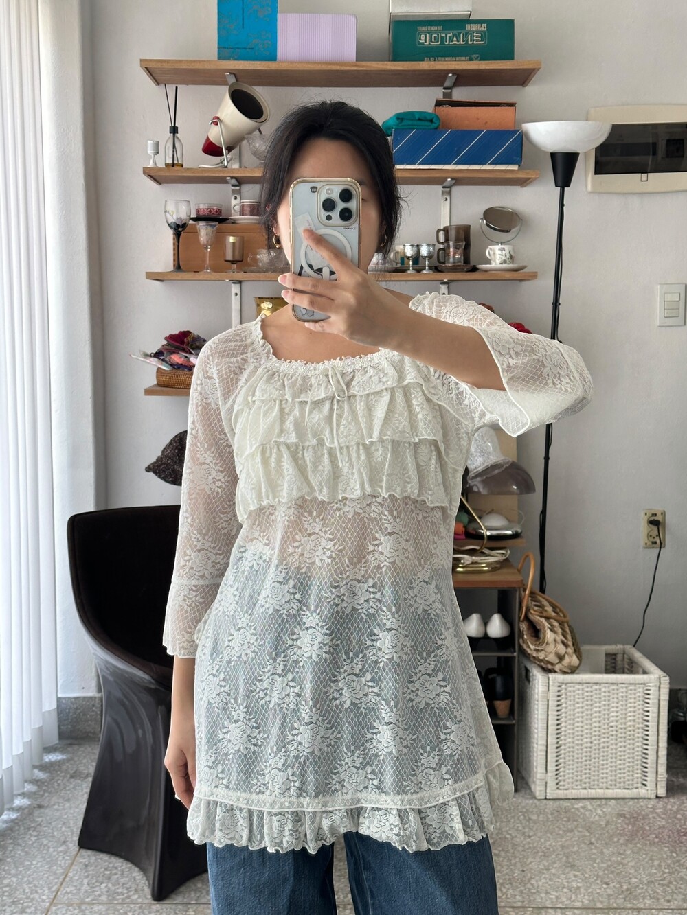 7부소매에 넥라인 얇은 리본 묶을 수 있습니다.