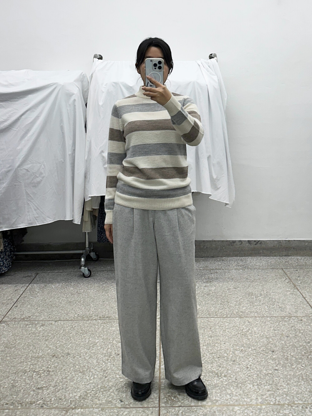 부드러운 울 혼용 소재감이며