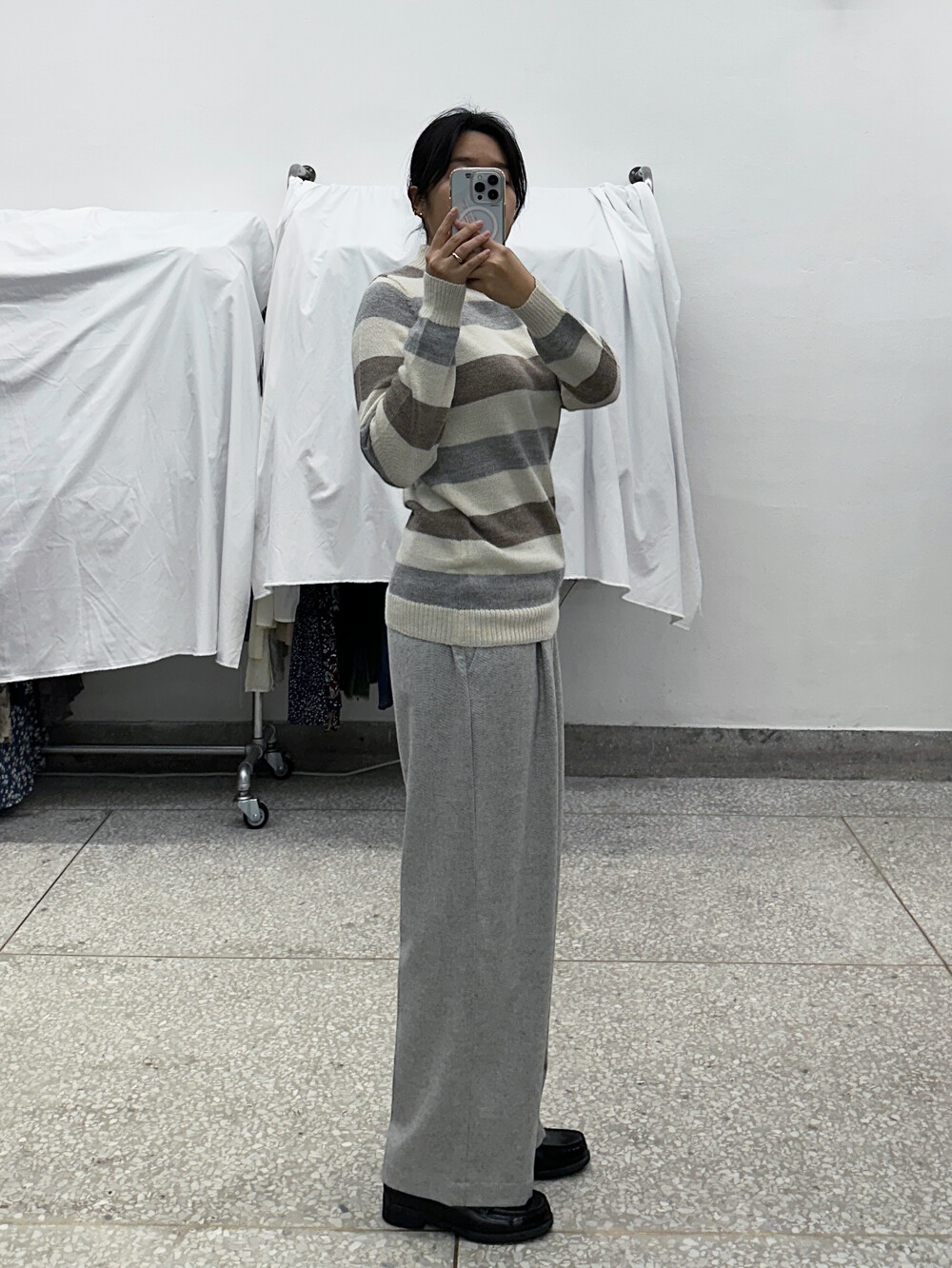 옅은 회색의 바지입니다.