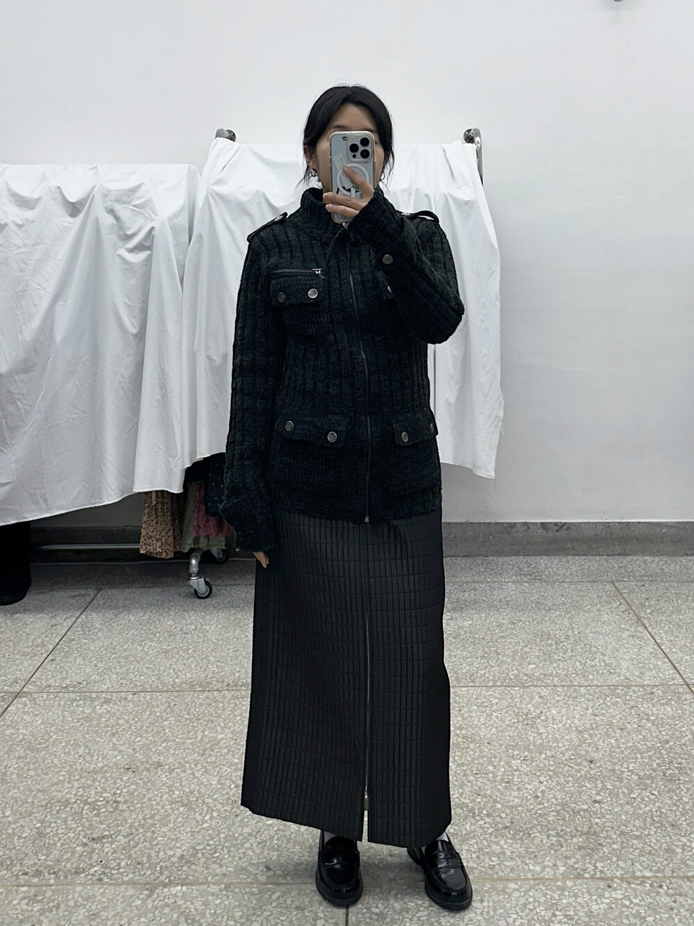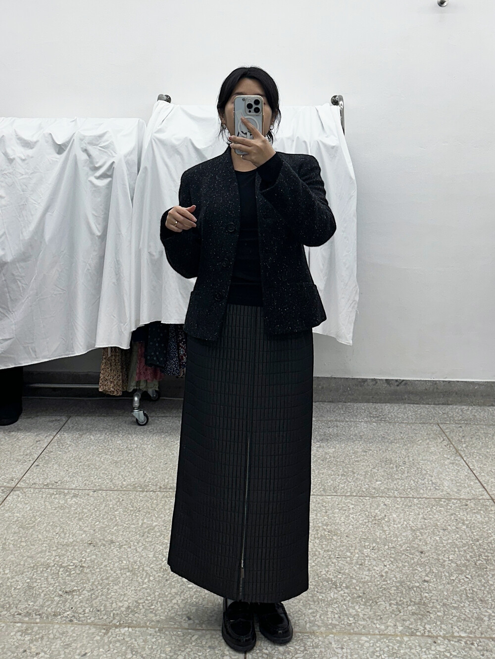 ♦ 아주 가끔 찍어올리는 착용샷 참고! 클짱은 155cm / 44반 55 / S사이즈 입니다.