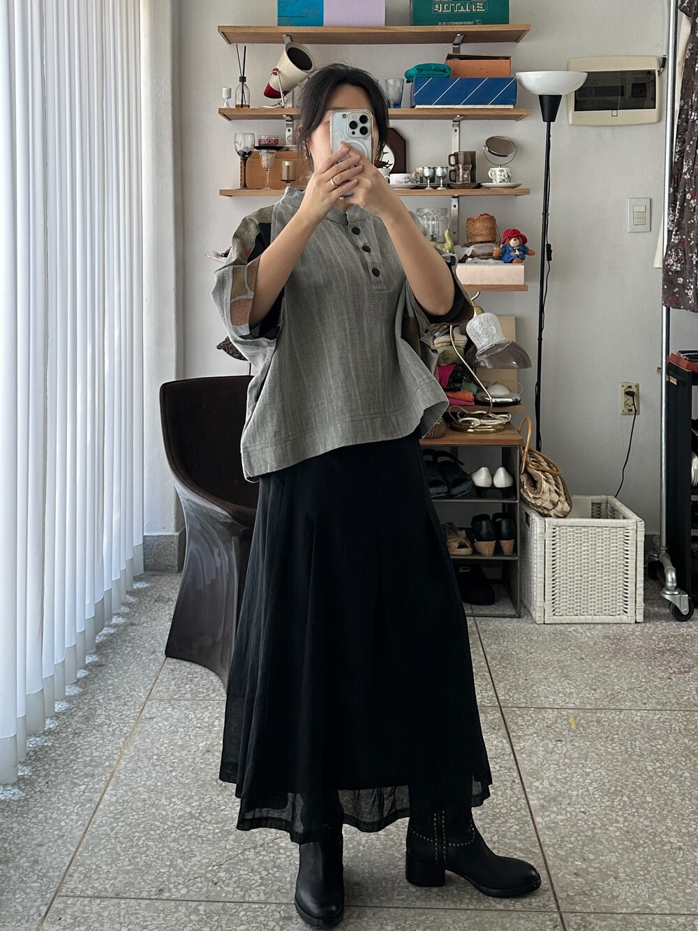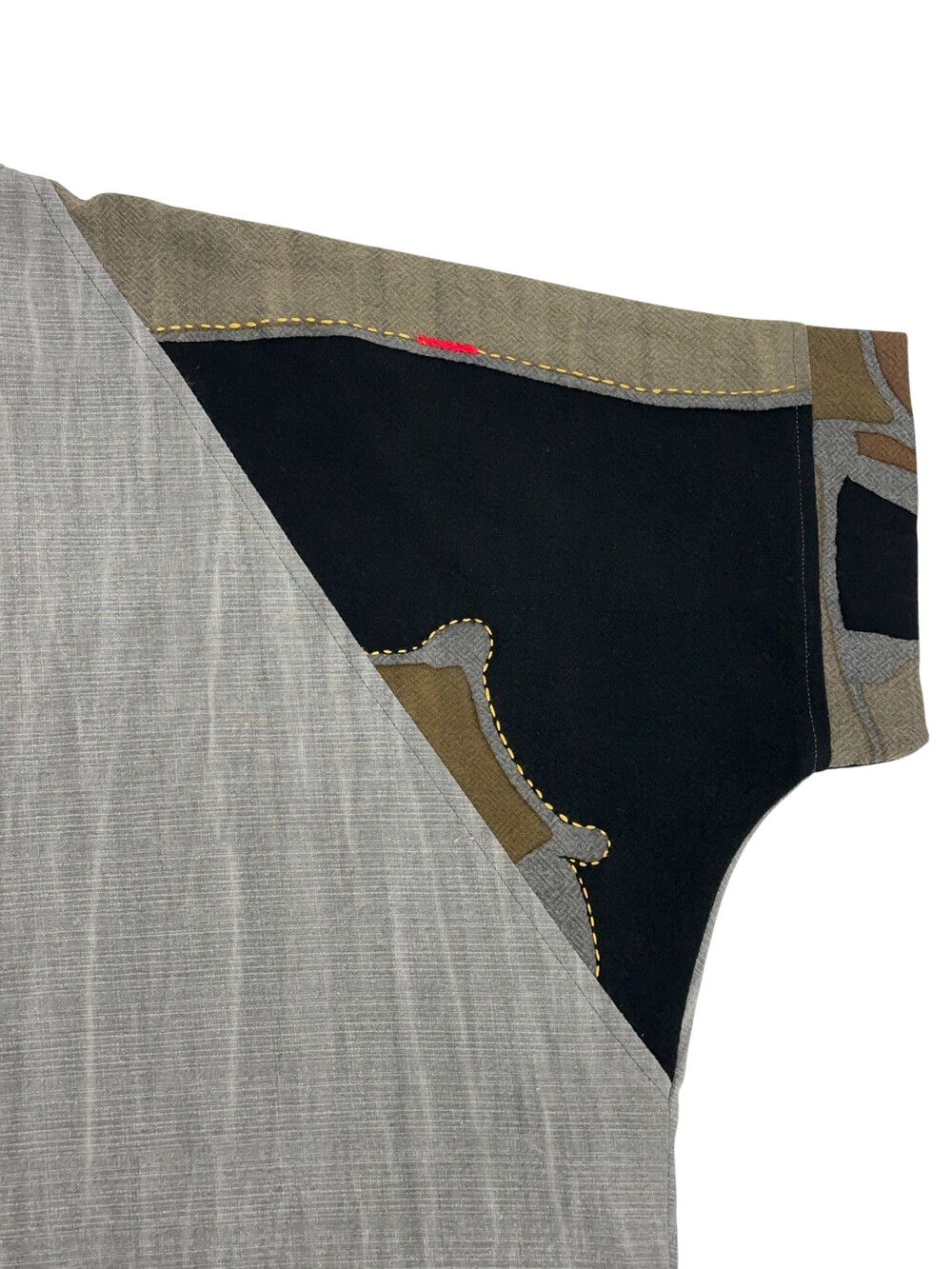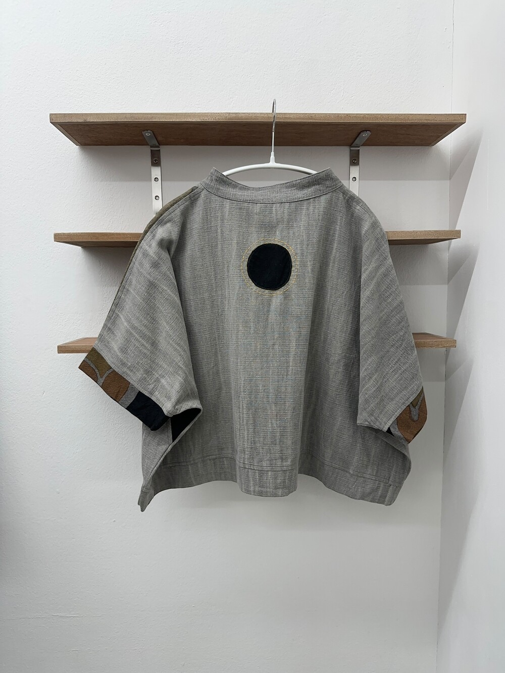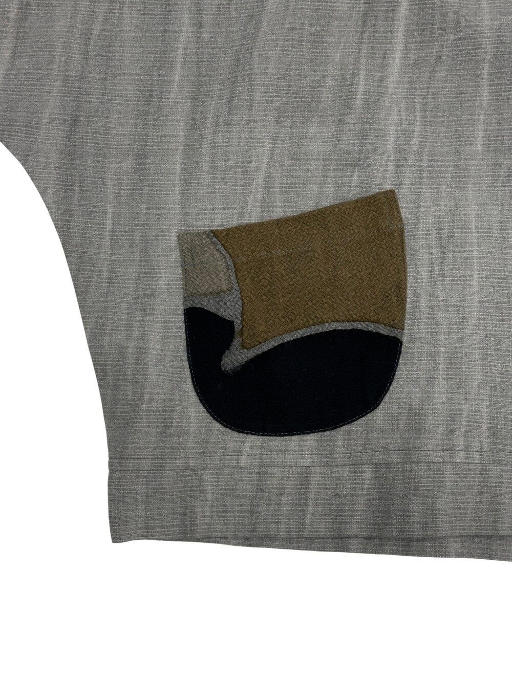 현대적인 패턴의 패치워크가 짧은 길이감의 옷과