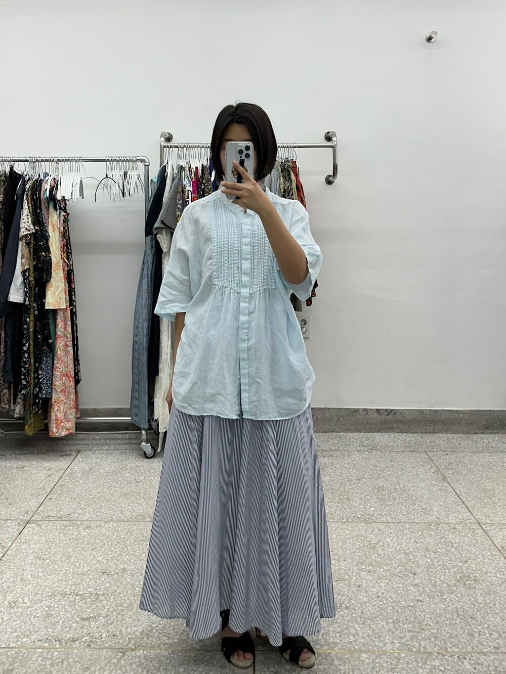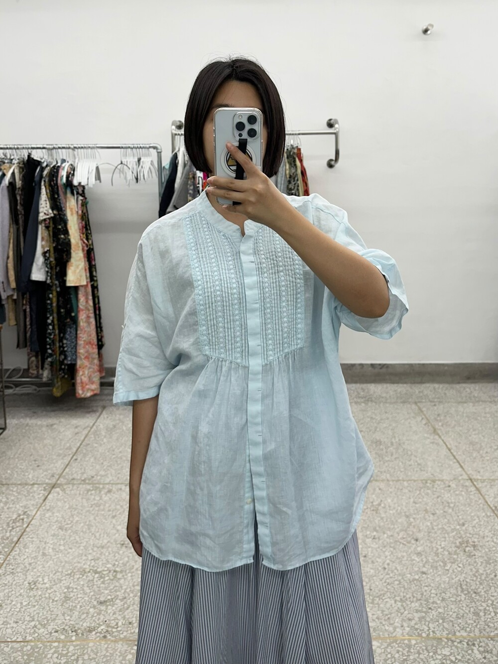 아주 옅은 하늘색상의 튜닉 상의랍니다.