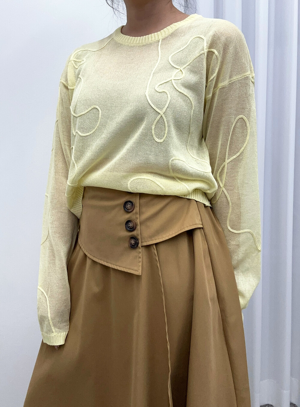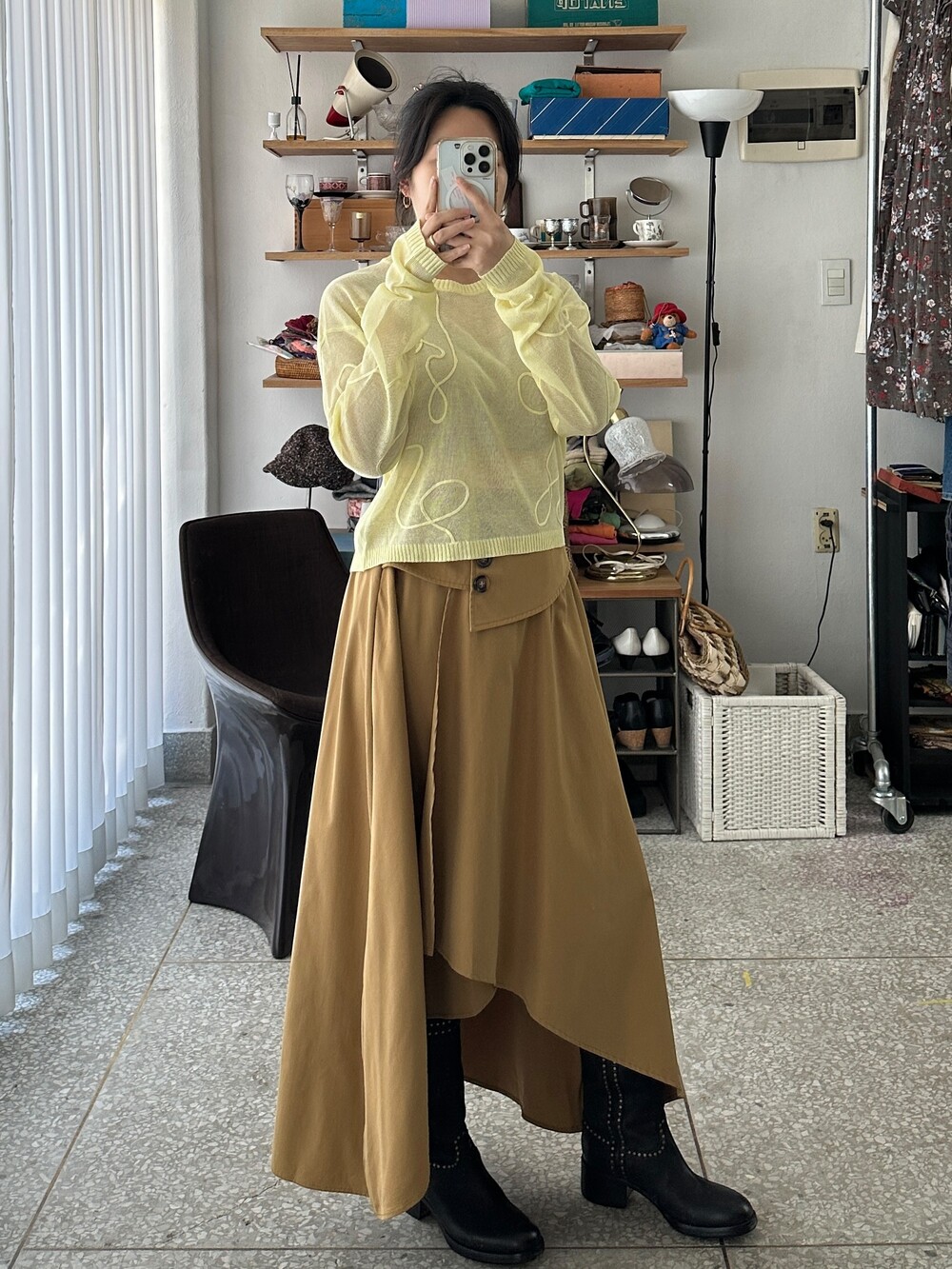 허리부분 사선으로 이어지는 단추가 포인트되어