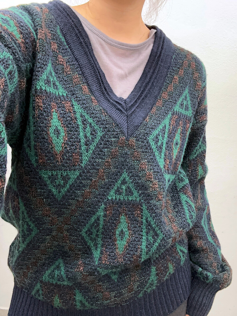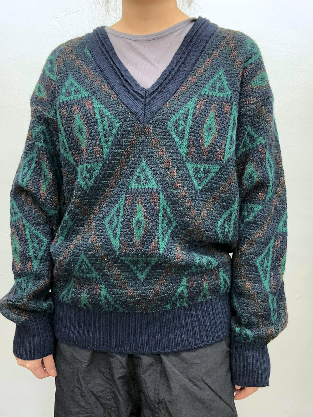 깊은 브이넥으로 다양한 이너와 매치하기도