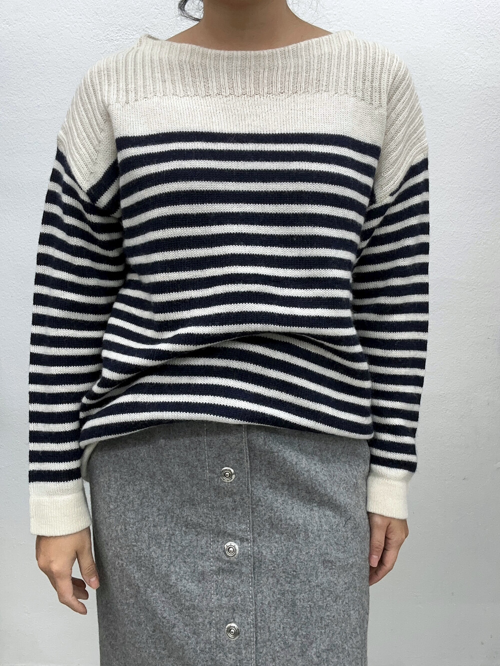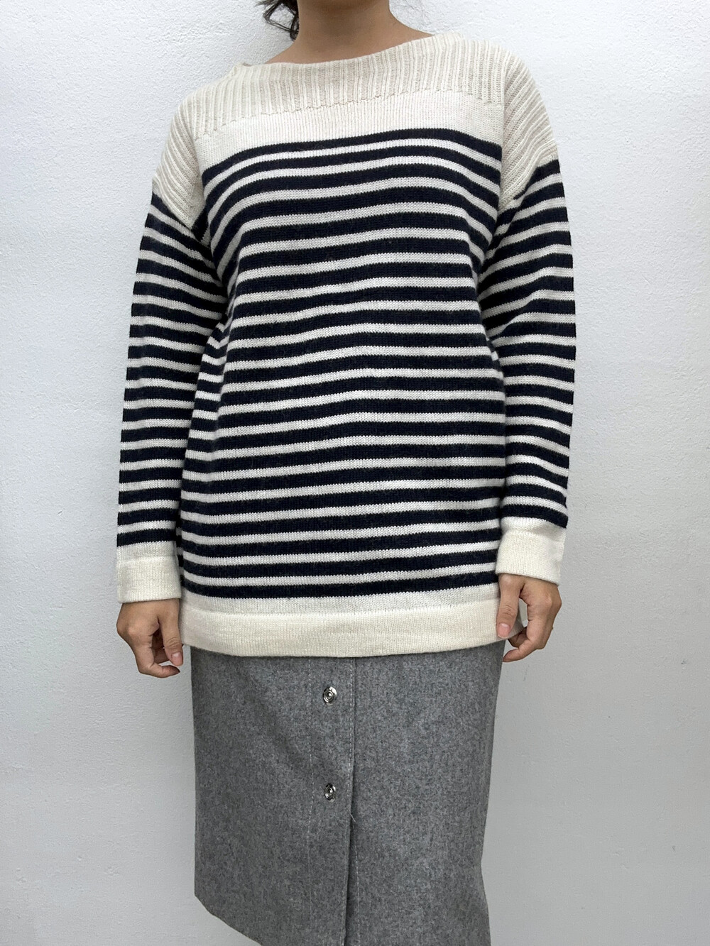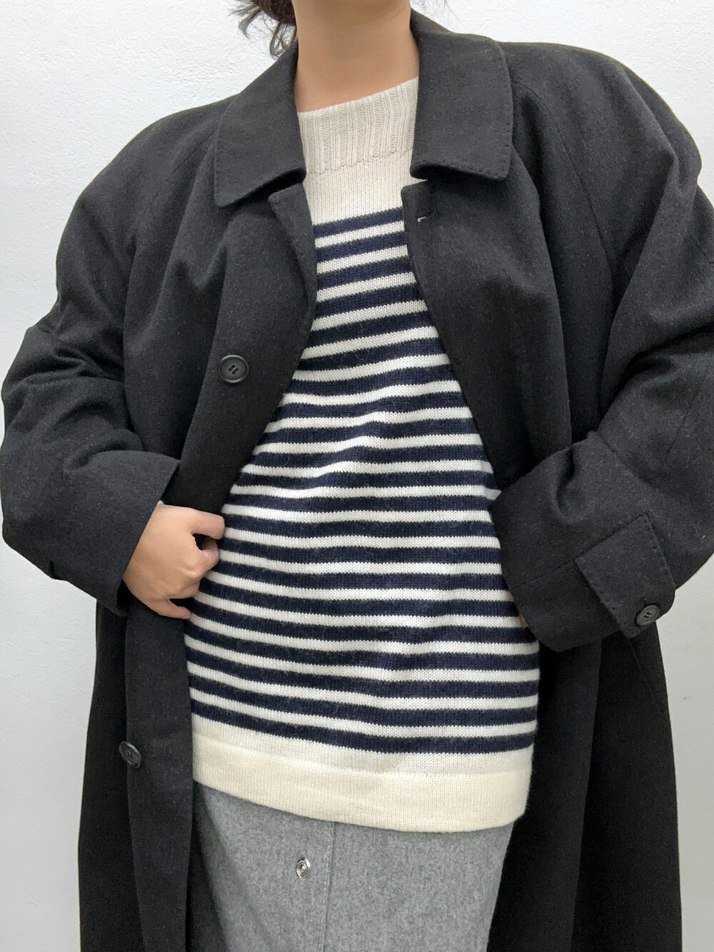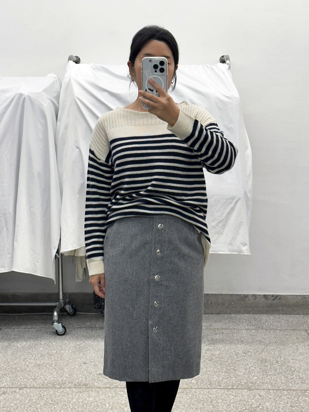 보트넥이며 하단 일자로 떨어지는 디자인입니다.