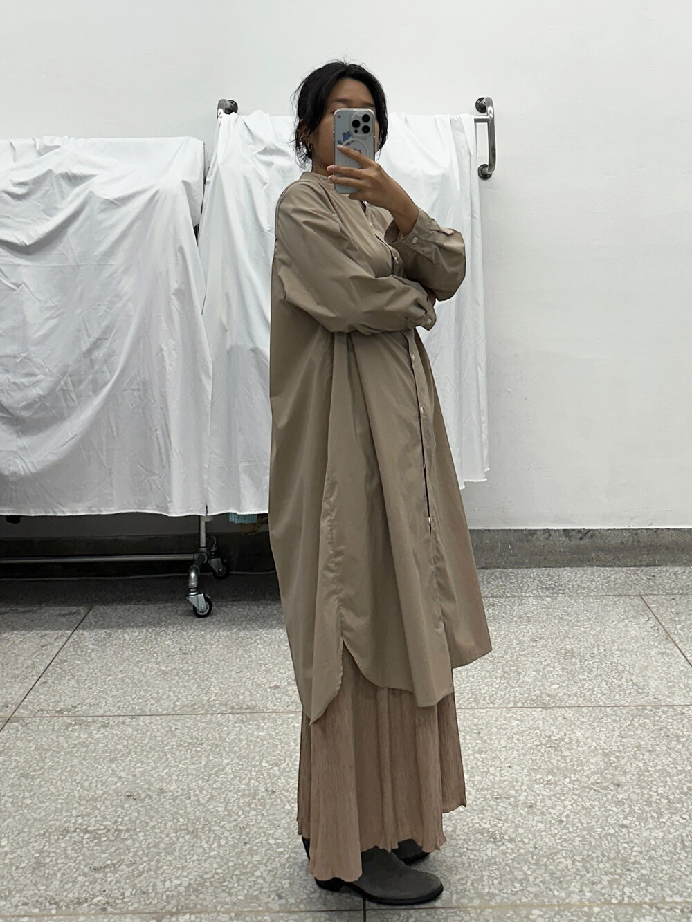 길이가 길어 원피스형태로 착용 가능해요.