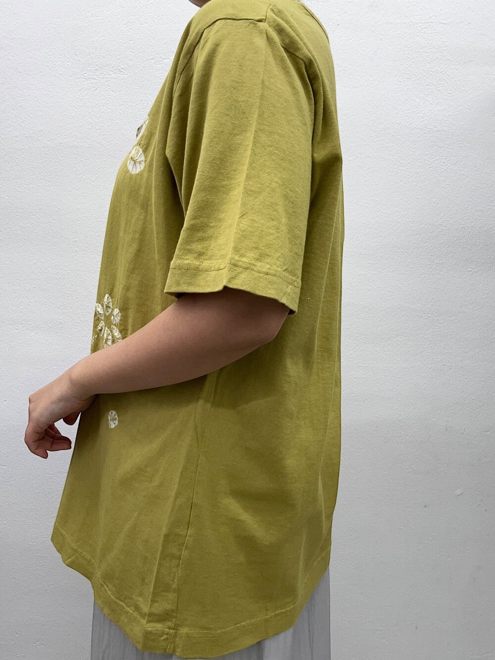 옅은 라임색상의 티셔츠입니다.