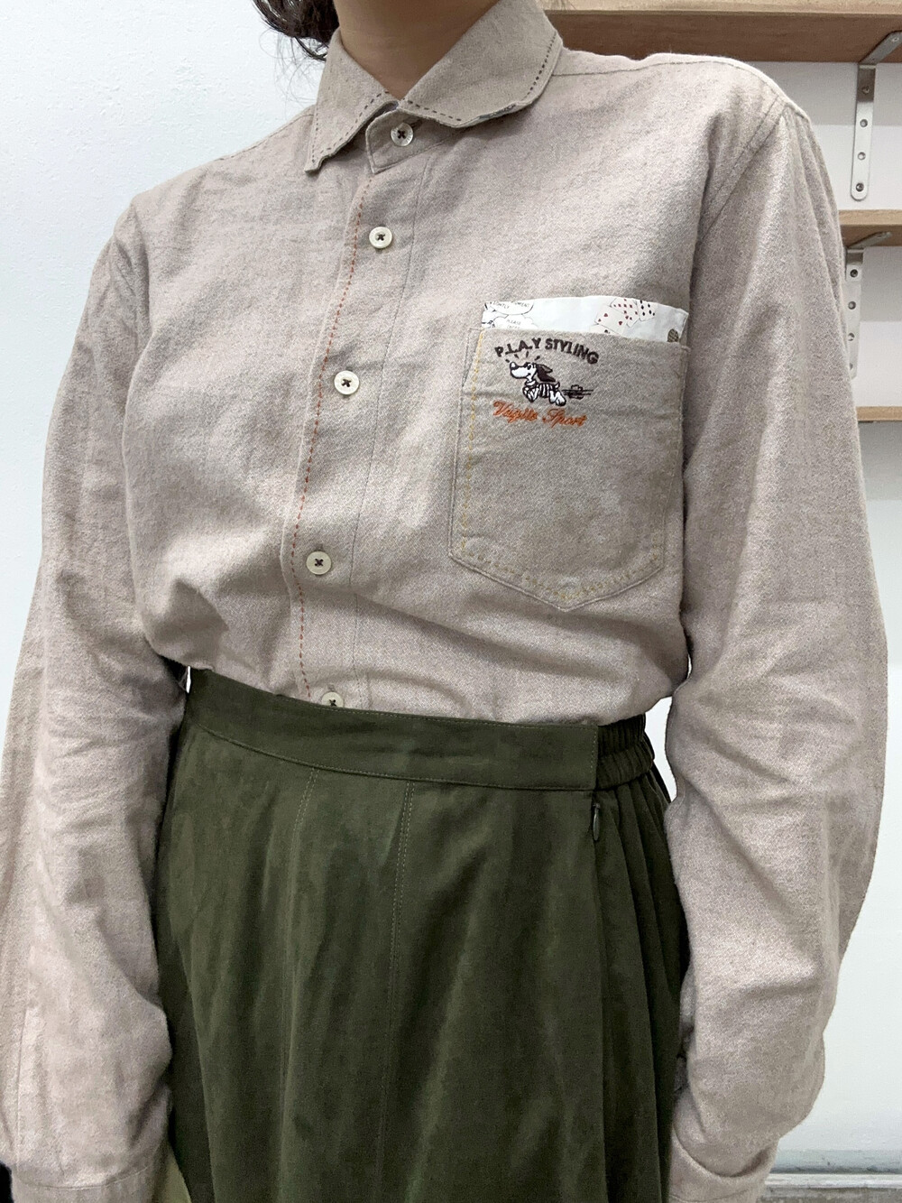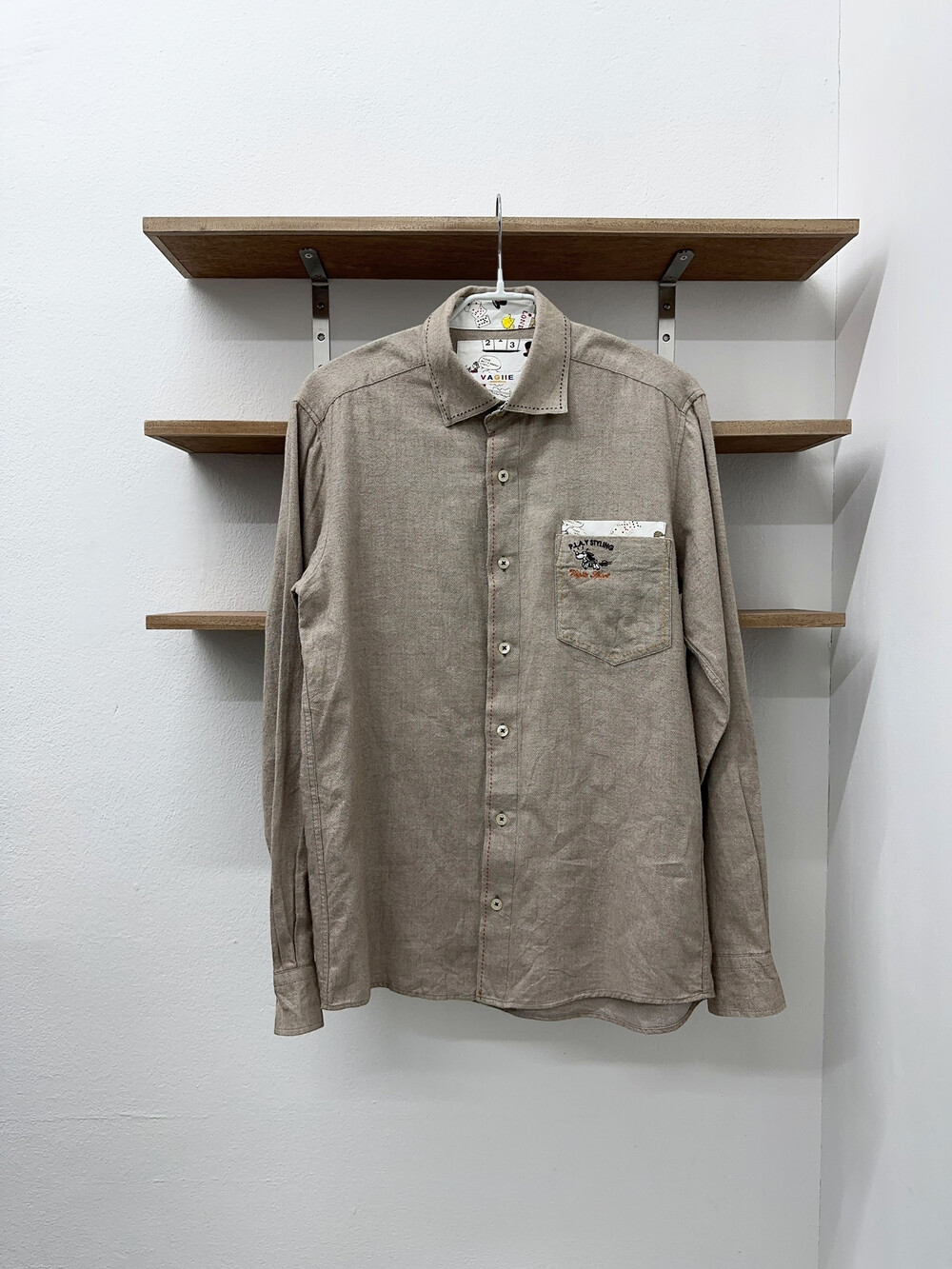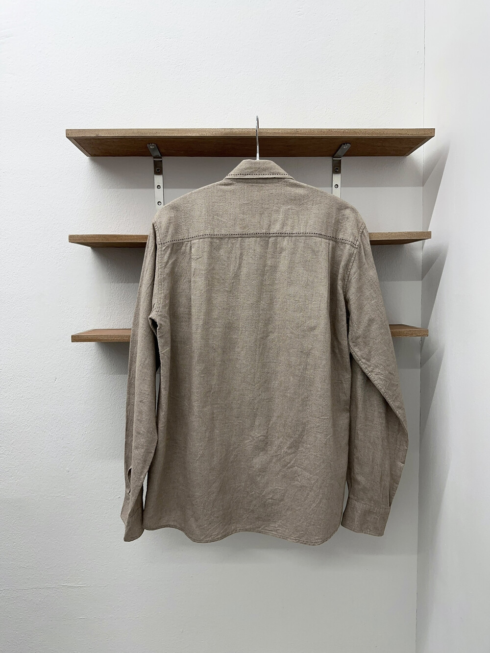 아이보리 베이지 색감의 셔츠입니다.
