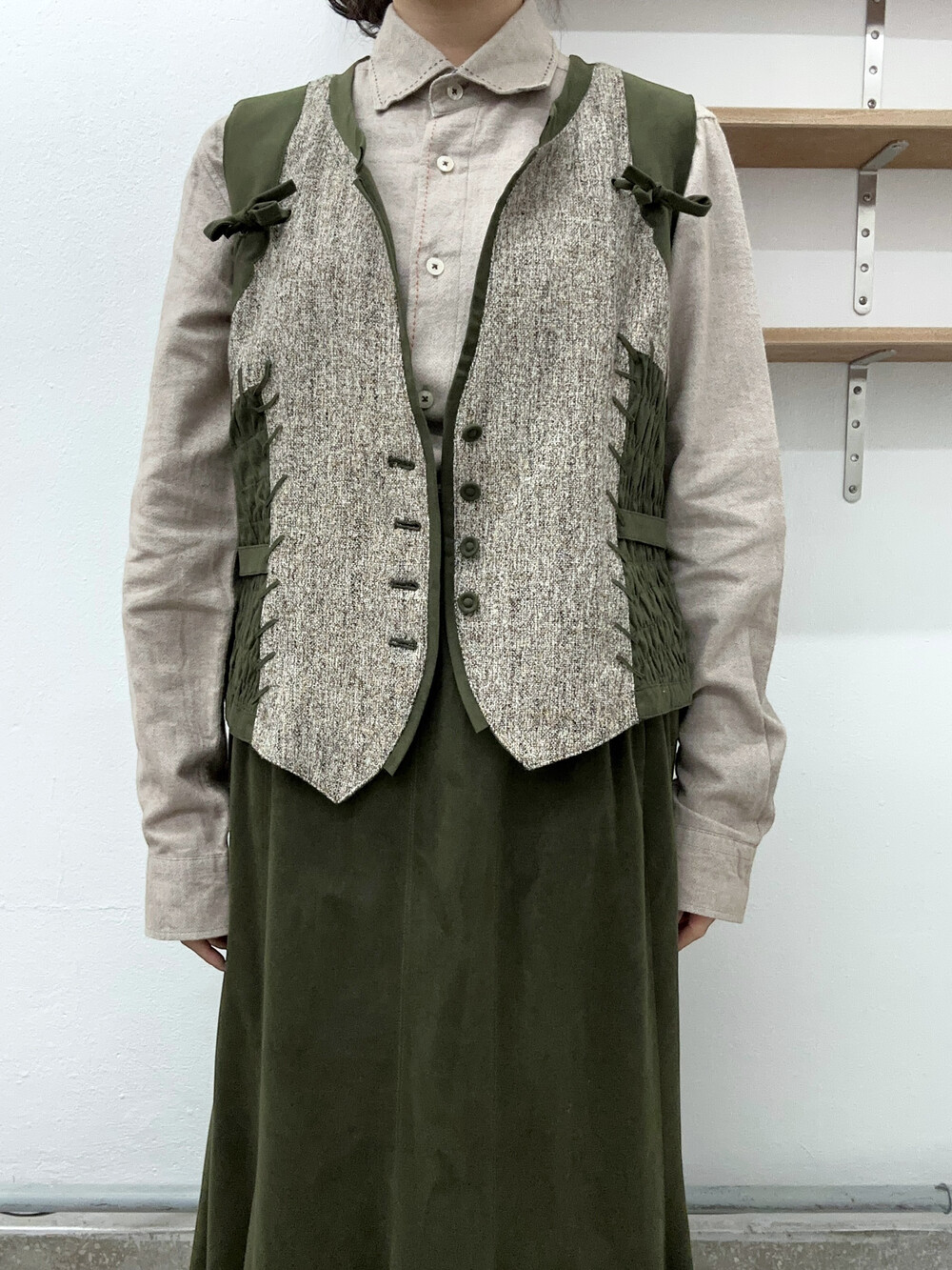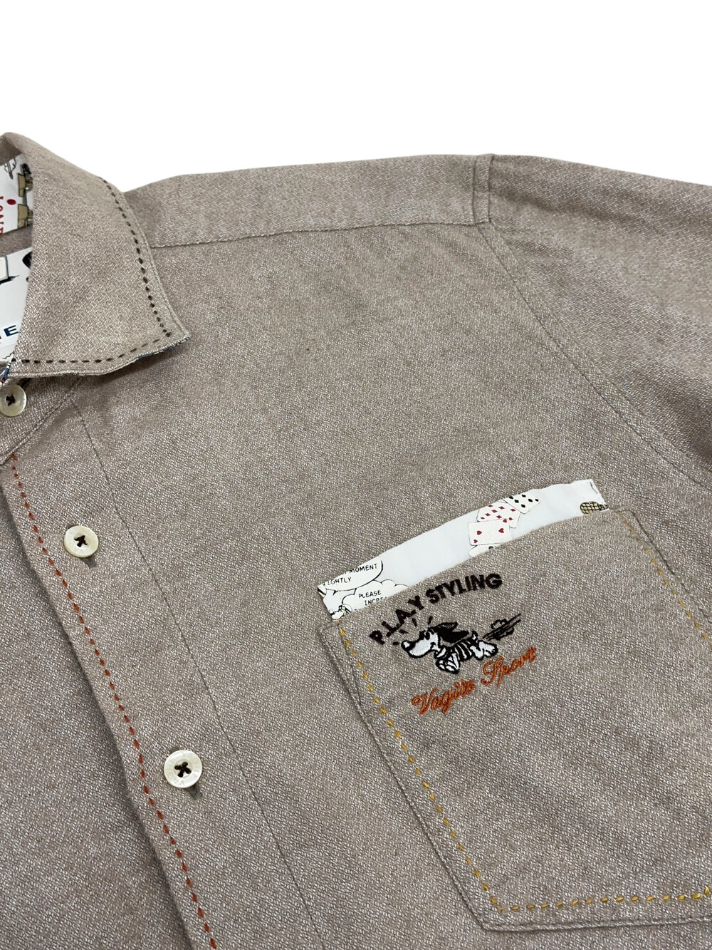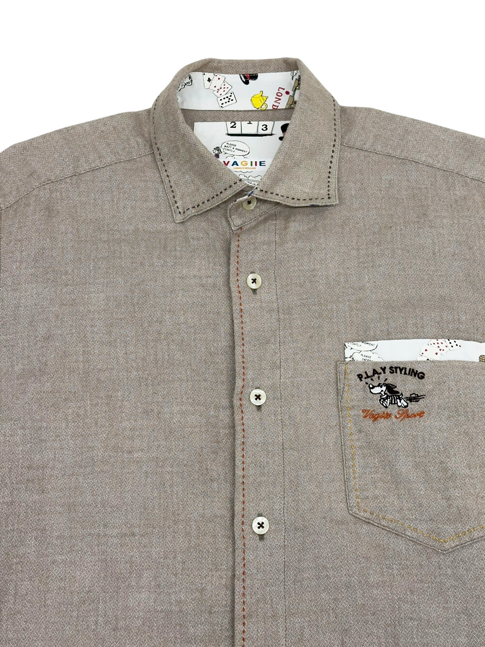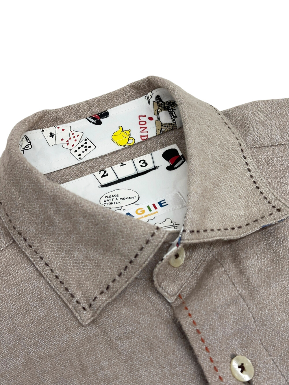 아이보리 베이지 색감의 셔츠입니다.