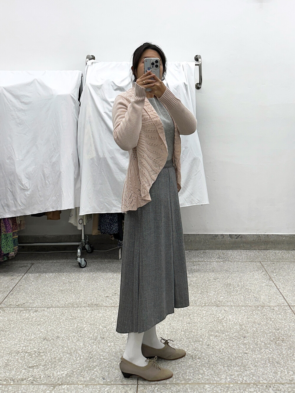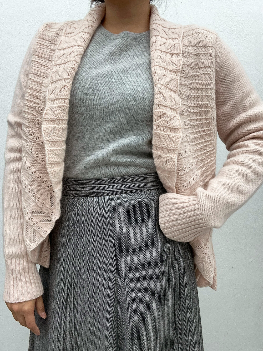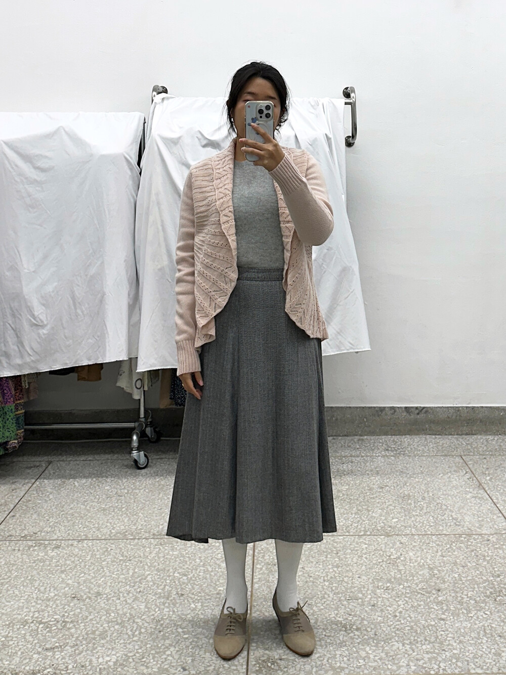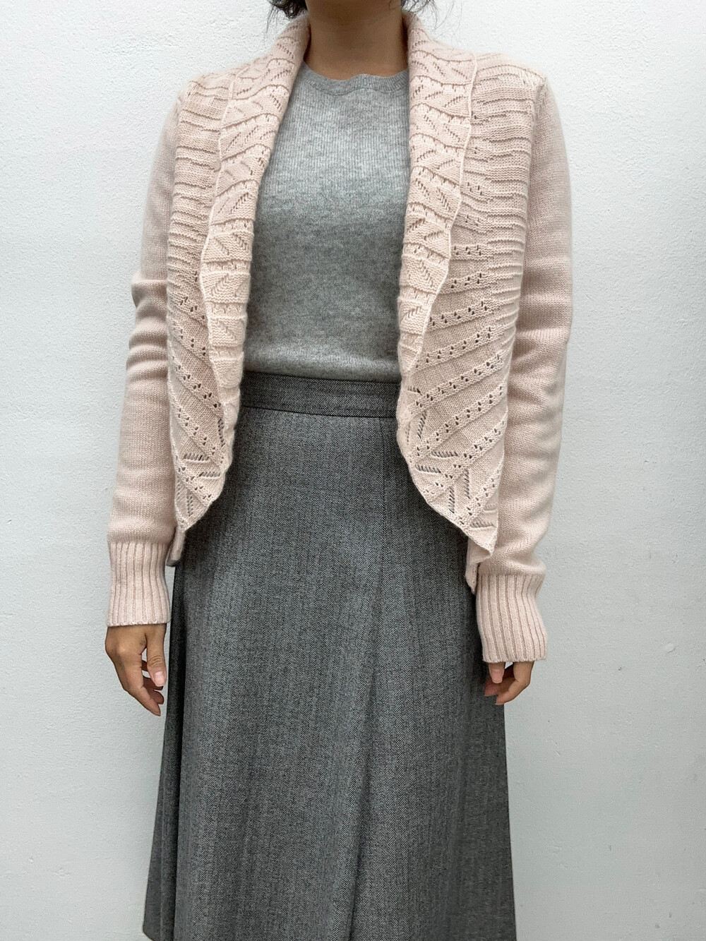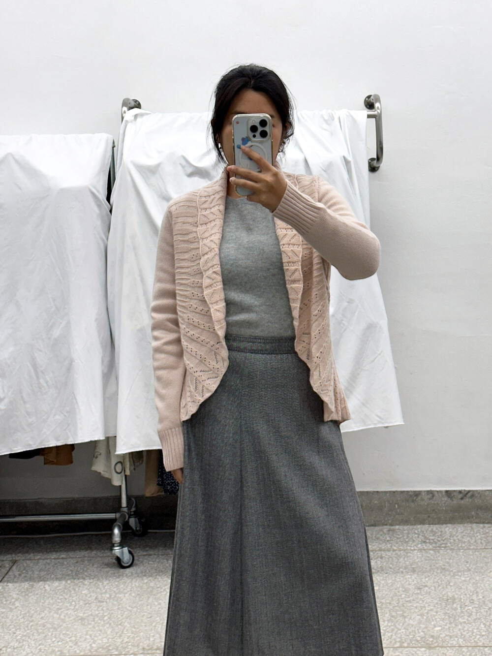 아주 여린 살몬핑크 색감의 가디건입니다.