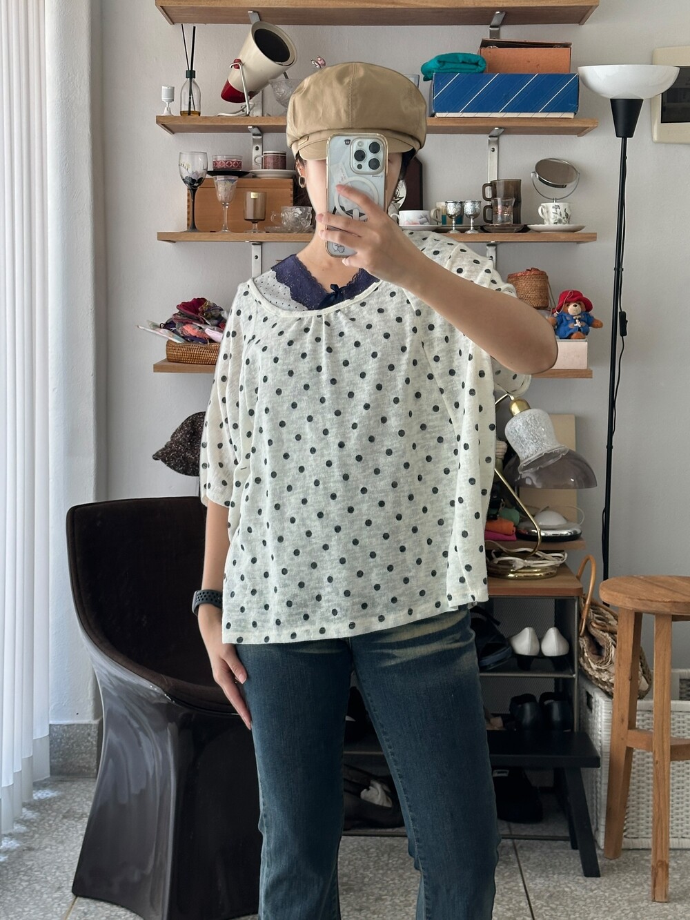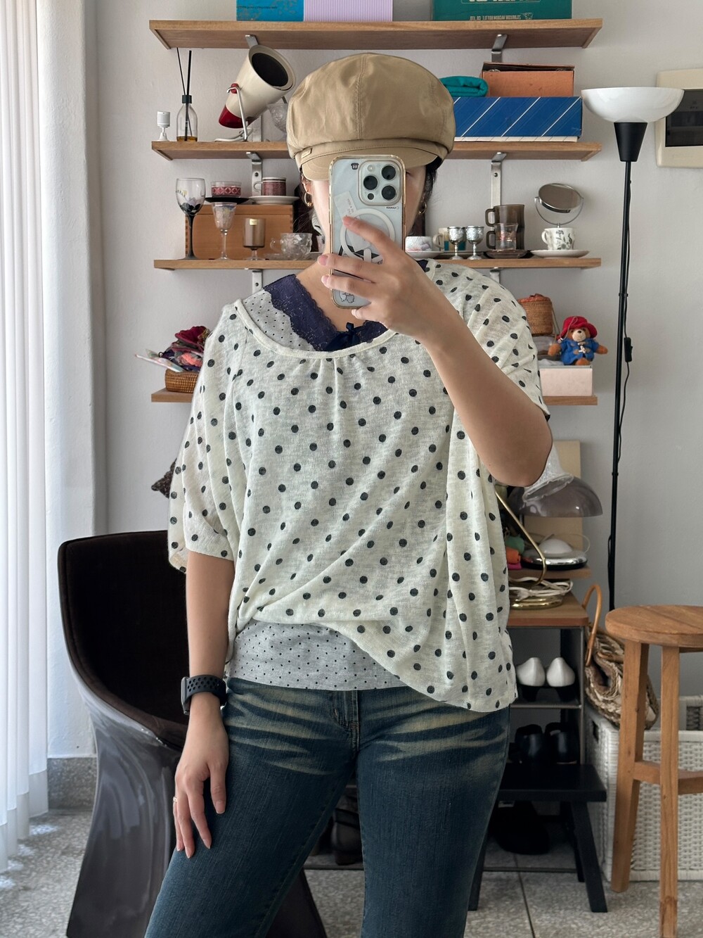 ♦ 아주 가끔 찍어올리는 착용샷 참고! 클짱은 155cm / 44반 55 / S사이즈 입니다.