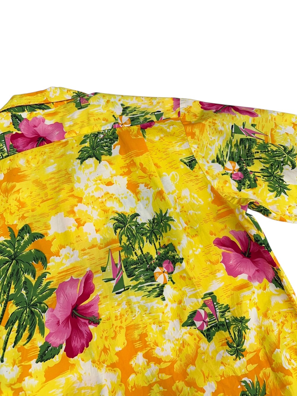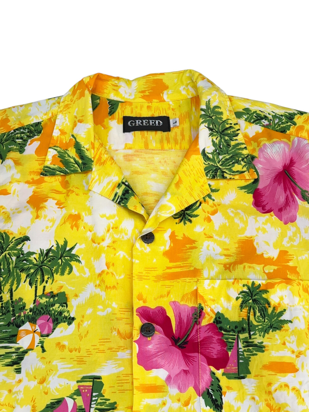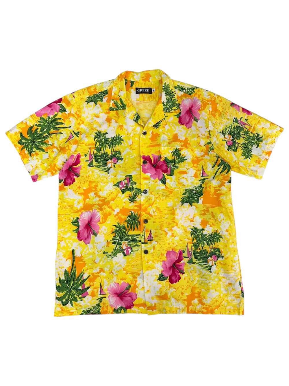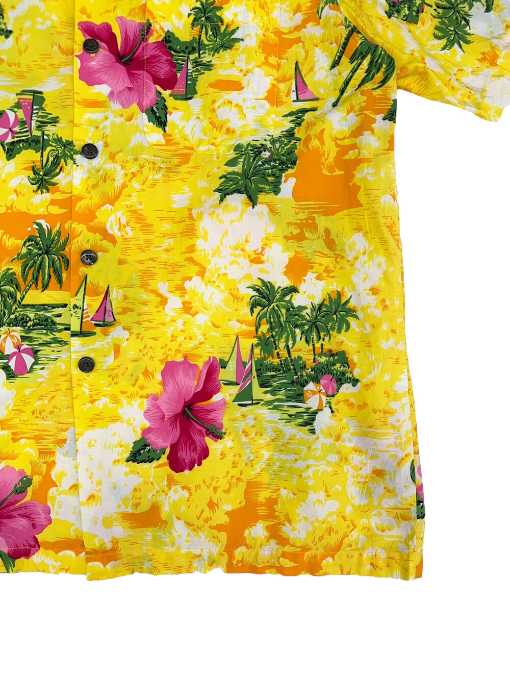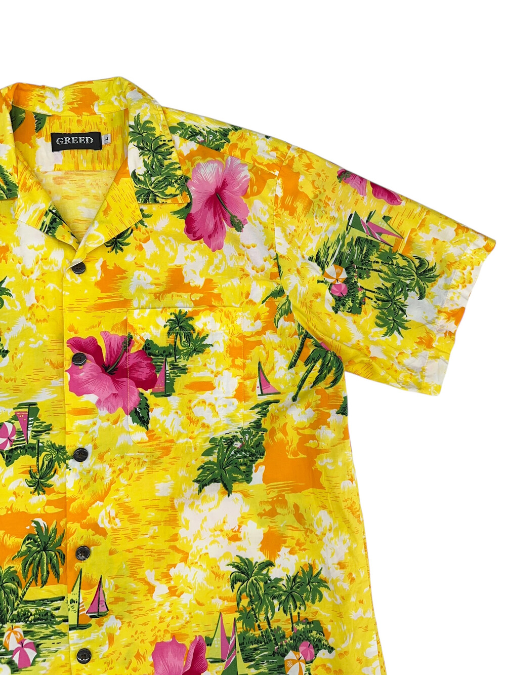 노란색상이 돋보이는 하와이안 셔츠입니다.