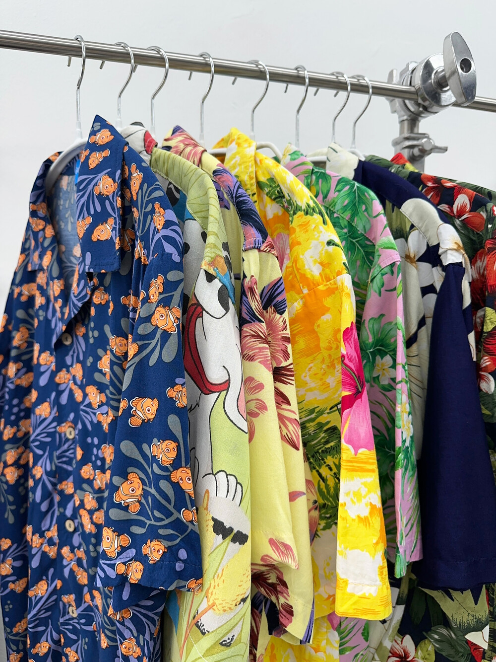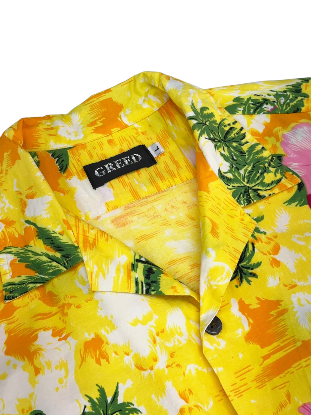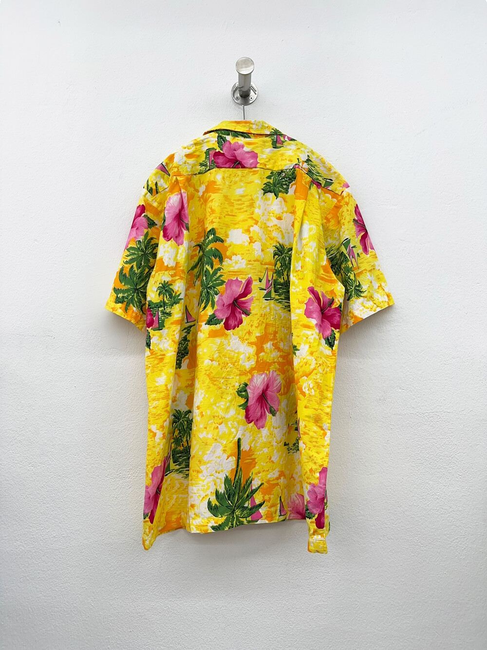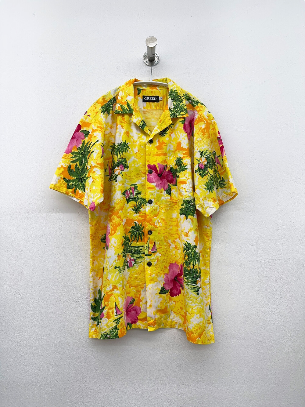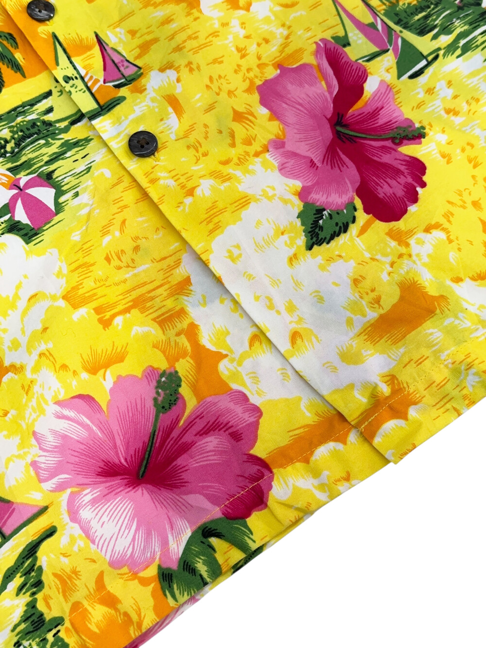 노란색상이 돋보이는 하와이안 셔츠입니다.