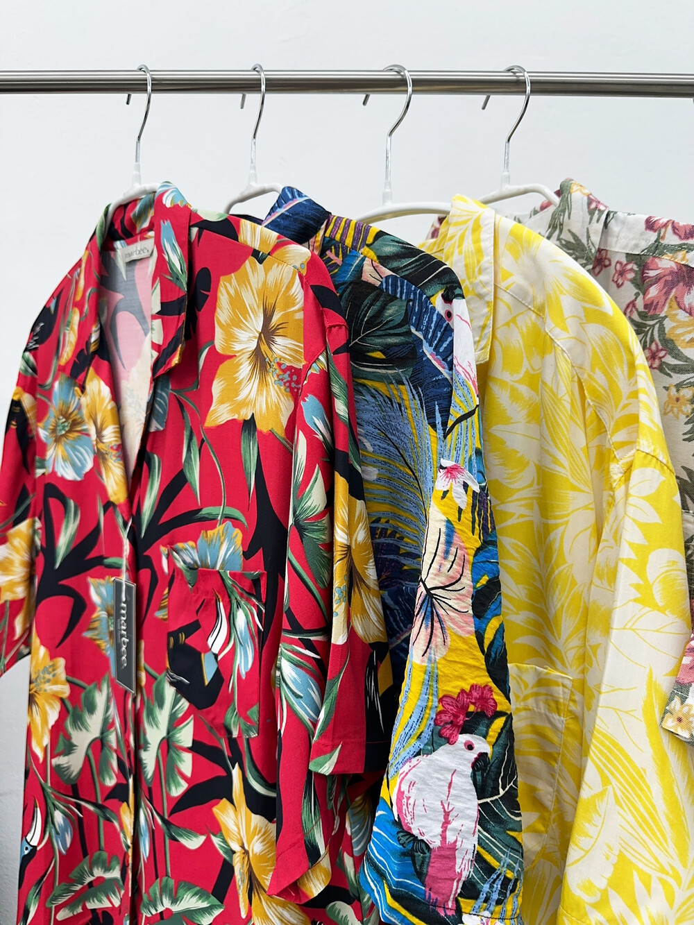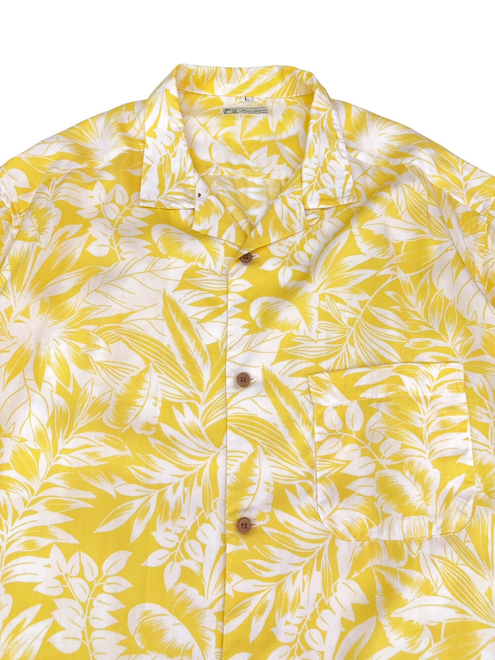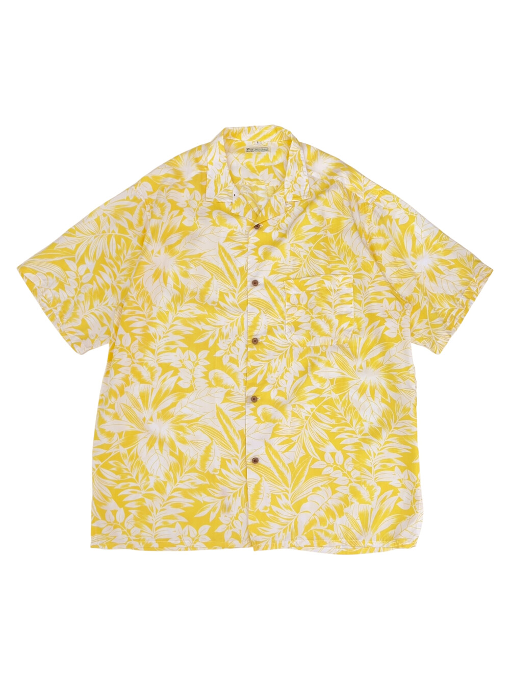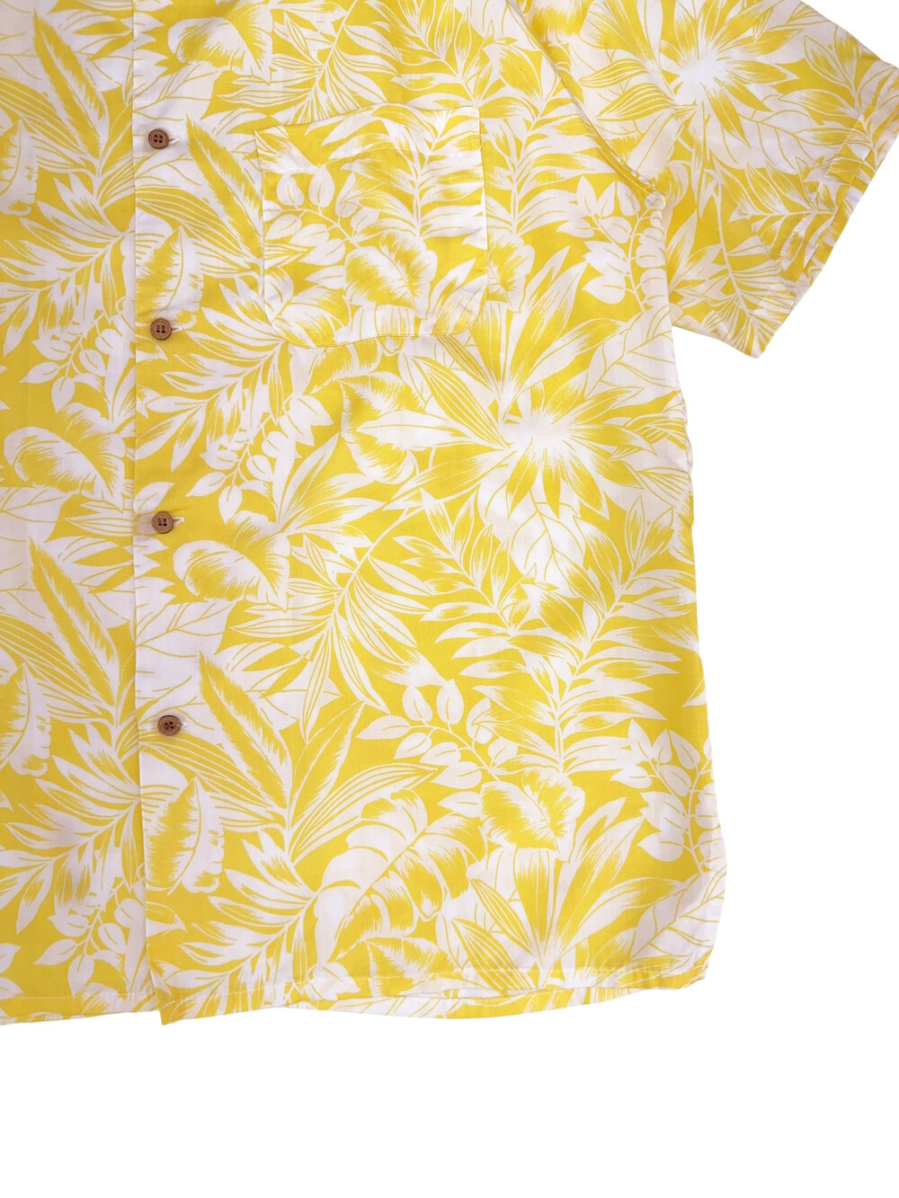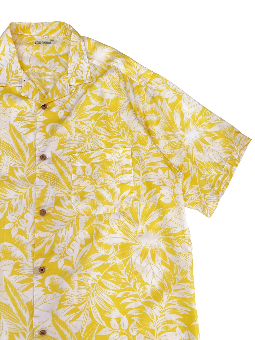 쨍한 노란색상의 하와이안 셔츠입니다.
